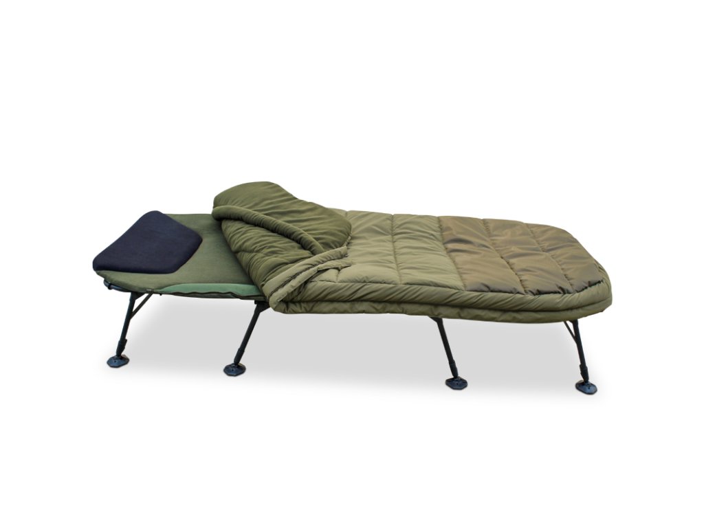 5-season Bedchair není jen super pohodlné osminohé lehátko s dokonalou plochou konstrukcí, je to také chytře promyšlený spací systém, ve kterém je přímo integrován kvalitní spací pytel a v závislosti na ročním období ho lze volitelně sejmout pomocí zipu. Perfektní systém spaní pro všechna roční období! Část spacáku v oblasti nohou je vyrobena z omyvatelného nylonu 210D. Navíc je navržen tak, aby byl prostorově nenáročný na přepravu a u vody ho lze extrémně rychle postavit.