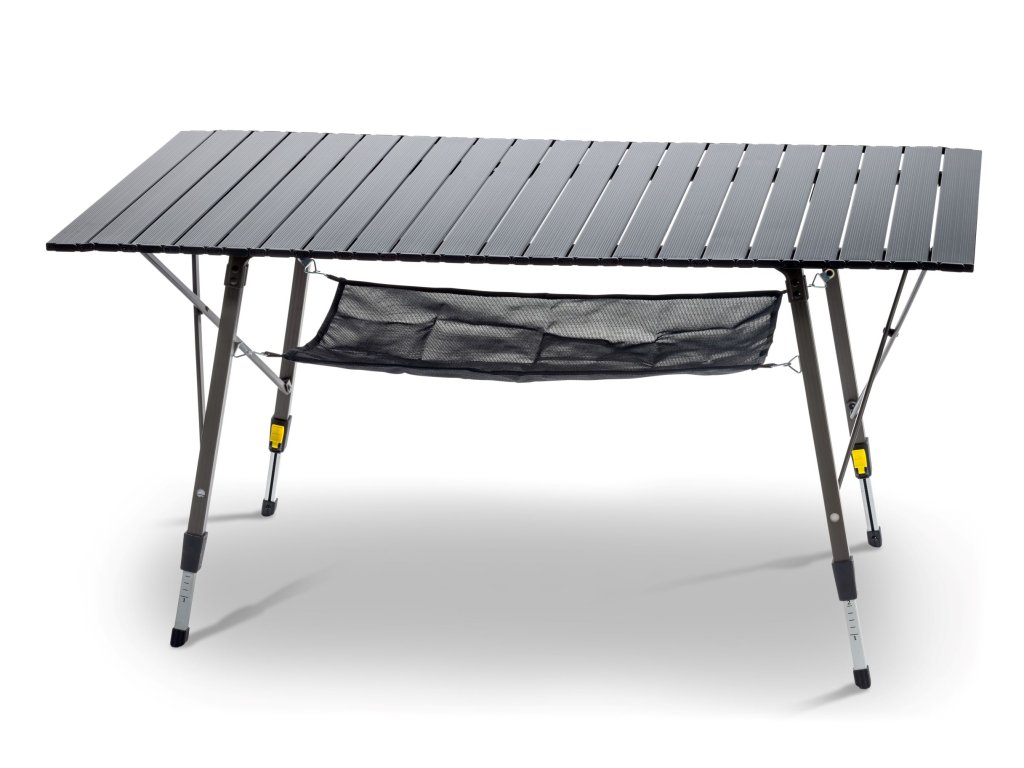Tento flexibilní hliníkový skládací stůl od společnosti Anaconda je výškově nastavitelný. Díky tomu se hodí do jakéhokoli terénu a může vám velmi zpříjemnit pobyt u vody. Vysoce kvalitní deska a lehký hliník, který je obzvláště robustní, zajišťují stolu potřebnou stabilitu. Celý stolek můžete jednoduše sbalit do obalu a snadno přenést.