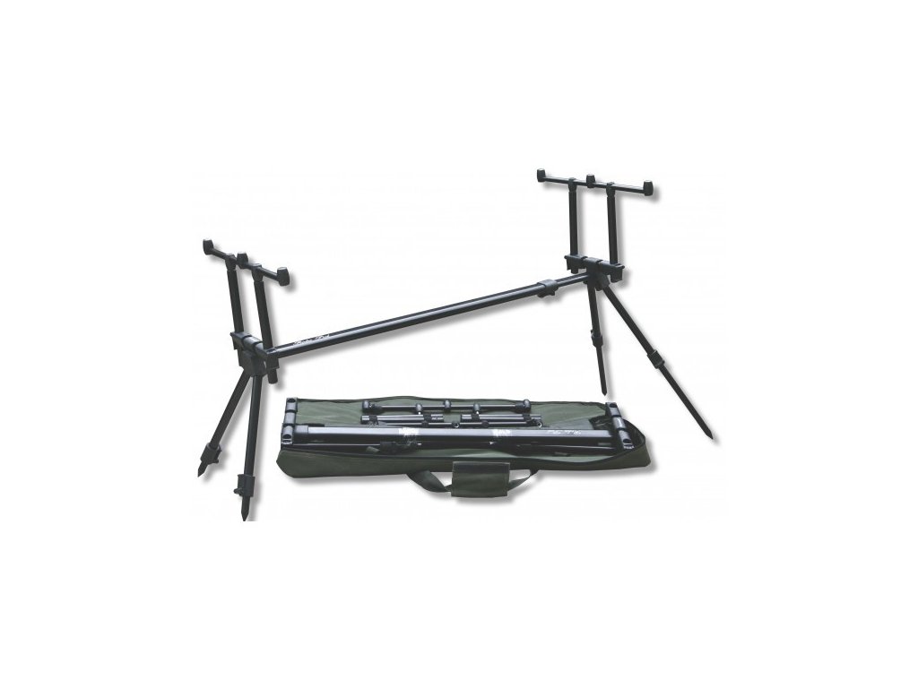 Jedná se o praktický, lehký a velmi odolný stojan na pruty. Jeho montáž je rychlá a jednoduchá. Stojan má 4 nastavitelné nohy (29 – 48cm), prostřední nastavitelný díl (78 -124cm), a výškově nastavitelné jsou i obě hrazdy (35 – 50cm). Hrazdy mají tři místa pro našroubování hlásičů nebo držáků prutu. Přepravní rozměry jsou 80 x 20 x 6cm a váha je 2,1kg. Samozřejmostí je i transportní taška z600D polyesteru.- transportní taška vyrobená z 600 D polyesteru