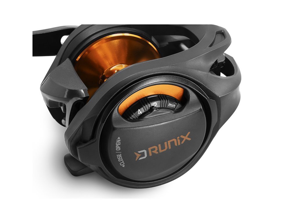 Baitcastový naviják RUNIX nezklame ani při lovu těch nejsilnějších predátorů našich vod. Při srovnání s klasickým navijákem s přední brzdou přináší hned několik výhod jako například větší sílu při navíjení, intenzivnější kontakt s nástrahou či ovládání navijáku jednou rukou. 7 kuličkových ložisek z nerezavějící oceli dodává navijáku odolnost, plynulý chod a zároveň možnost jednodušších hodů na větší vzdálenosti. Převodový poměr 6,3:1 umožňuje lovci, zejména při vertikálním lovu, pracovat s nástrahou s vysokou precizností. Při spouštění a nahazování nástrah oceníte citlivou magnetickou brzdu, která zamezí nechtěnému motání šňůry. Naviják je také vybaven POWER rukojetí určenou pro silové zdolávání, pomocí které můžete ve srovnání s klasickou kličkou vyvinout během zdolávání podstatně větší sílu. Při přetížení nastavené bojové brzdy se z navijáku začne odvíjet vlasec, což oznámí také brzdný systém, který je vybaven indikací přetížení brzdy. Jeho hmotnost je pouhých 262g! Díky tomu je i dlouhodobé používání bezproblémové a nepřetěžuje ruku lovícího. Ocení jej zejména lovci dravých ryb, kteří baitcastové navijáky používají při lovu spolu s pruty typu 'baitcast', nebo pruty určenými pro vertikální přívlač z lodi či belly boatu.Technické parametry: