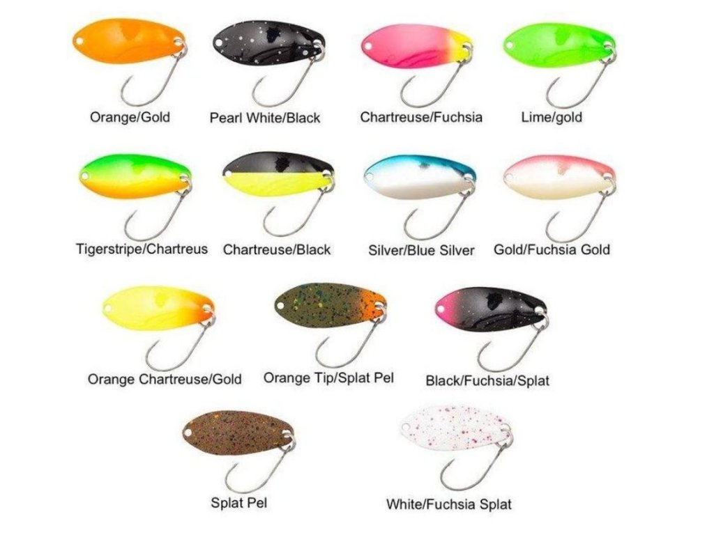 Berkley Area Game Spoons Masu mají široký tvar lopatky s agresivní akcí i při pomalém vedení nástrahy. Je to vysoce účinná nástraha při rychlém vedení na aktivní pstruhy těsně pod hladinou.