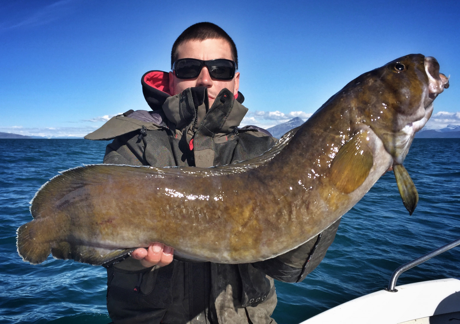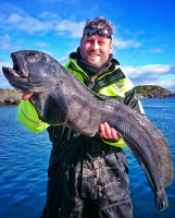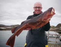 Po více jak hodině se domlouváme na změně a rozhoduje se jet k nejbližšímu majáku a zkusit hlubší hranu, ta by nám mohla vydat nějakou pěknou kočku nebo tresku. Svůj prut tak osazuji švédským pilkrem a pouštím do hlubin. Karlos zkouší nasadit kus mrtvého kellera, který má velmi aromatické maso a kočky po něm přímo šílí. Jediný Robert věří stále velké gumě. Chvíli trvá, něž 500 gramové nástrahy osazené velkými háky dopadnou do hloubky kolem 60 metrů, kde věříme v úlovek. První záběr přichází asi po 10 minutách na mého pilkra a při zdolávání trochu tuším co to bude za rybu. Mé tušení mě nezklamalo a u lodi se vynořuje nejméně oblíbená ryba ,,Smraďoch“. Trochu jsem doufal v jiný úlovek, ale nakonec mě tento Mník Brosma i potěšil. Byl zatím můj největší a tak jsem si s ním udělal fotku. Během chvíle kluci dostali také pár kopanců a vytáhli nějaké mníky. Ti byli ale vyháčkováni rovnou ve vodě, protože se tradičně celý zesra… a zanechali nám tak hladinu moře plnou smradu. Přejeli jsme tedy o kousek dál a snažili se ulovit alespoň jinou rybu. Nevím jestli šlo o neznalost těchto míst nebo smůlu, ale na druhé straně se nám prostě nedařilo a tak jsme tu ztratili důvěru v úlovek.