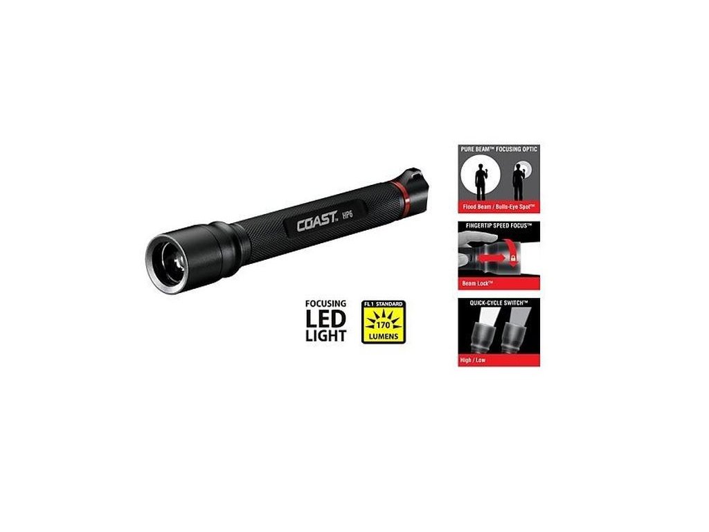 COAST HP6 Baterka - vysoce výkonná LED svítilna. Je skvělou volbou pro každého, kdo hledá vysoce intenzivní světelný zdroj malých rozměrů. Rychlé cyklické přepínání umožňuje provoz s dvojím světelným tokem – zatímco vysoký světelný tok dává 170 lumen, nízký světelný tok 34 lumen šetří energii a umožňuje nastavit režim podle způsobu použití a okolního prostředí. Dvě možnosti ovládání (Pure Beam Focusing Optic System a Fingertip Speed Focus Control) umožňují skvělé a plynulé nastavení světelné stopy – od bodového osvětlení až po konstantní osvětlení plošné, které nevykazuje žádné tmavé oblasti nebo nepravidelnosti osvětlení plochy. Pomocí systému Beam Lock může uživatel snadno zafixovat zvolené ohnisko zobrazení. Světelná stopa dvojí intenzity (tzv. “býčí oko”) umožňuje dosáhnout přijatelného osvětlení v optické ose až na vzdálenost 104 metrů při dostatečném periferním osvětlení okolního prostoru. Svítilna má tuhé nárazuvzdorné lehké hliníkové tělo, odolné proti korozi. Svítilna je vybavena nerozbitným světelným zdrojem LED a pogumovaným O-kroužkem pro zvýšení vodotěsnosti a odolnosti proti nárazu. Svítilna byla testována nezávislou laboratoří a označena podle standardů ANSI/FL1.