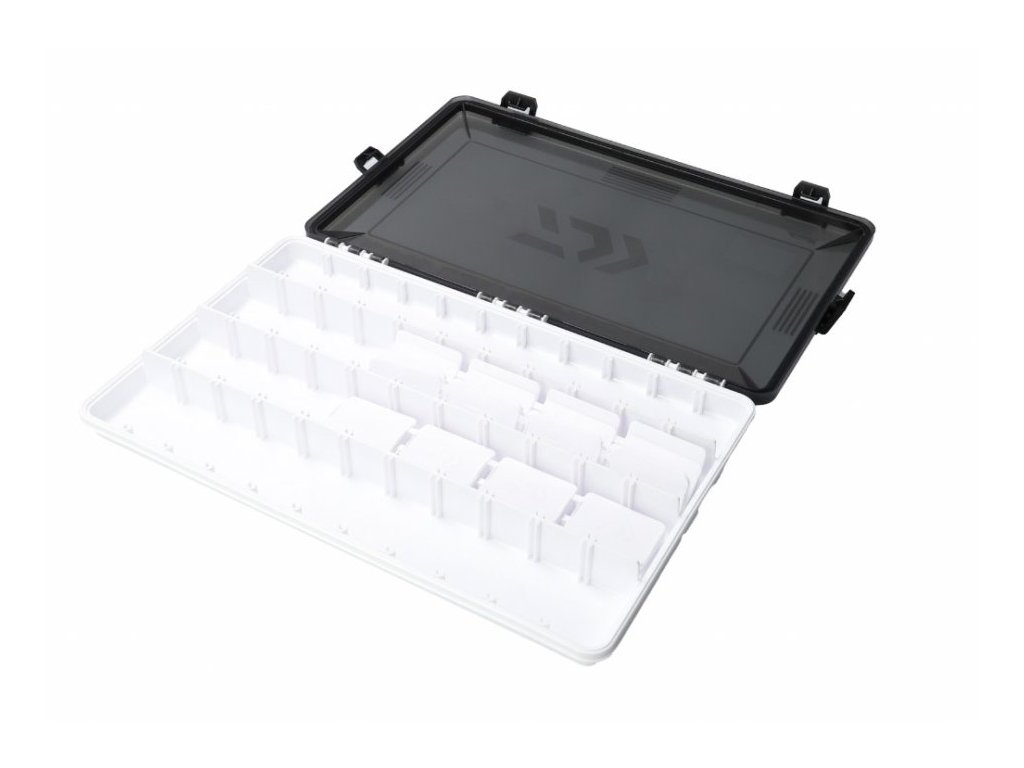 DAIWA D-BOX LS Smoke 34,4 × 21,5 × 3,3 cm (14312-000) je mělká úložná krabička z řady D-BOX Tackle System určená pro přehledné uložení rybářského příslušenství a nástrah v situacích, kdy potřebujete co nejnižší profil a úsporu místa v tašce nebo batohu. Díky výšce 3,3 cm je ideální na bižuterii (háčky, obratlíky, karabinky, kroužky), hotové návazce, menší jigové hlavičky, plíšky, drobné olůvka nebo menší gumové nástrahy. Kouřově průhledné (Smoke) víko umožní rychlou orientaci v obsahu bez zbytečného otevírání a velký půdorys 34,4 × 21,5 cm nabízí dost prostoru pro logické rozdělení výbavy podle typu lovu. Robustní provedení je vhodné pro pravidelné používání při přívlači, feederu i univerzálním rybolovu.