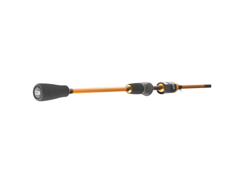 DAIWA Prut Presso Trout Spin 1,9m 0,5-5g je ultralehký přívlačový prut navržený pro jemný lov pstruhů na tekoucích i stojatých vodách, kde rozhoduje přesnost, cit a kontrola nad nástrahou. Díky velmi nízké gramáži vrhací zátěže 0,5–5 g je vhodný pro malé třpytky, woblery a drobné gumové nástrahy, které potřebujete vést přesně a s citlivým kontaktem se dnem i proudem. Karbonový blank je lehký a rychle přenáší informace do ruky, takže lépe poznáte jemné záběry i změnu chodu nástrahy. Parabolická UL akce pomáhá udržet rybu při zdolávání na tenkých návazcích, tlumí výpady a snižuje riziko vypnutí háčku. Dvoudílné provedení se snadno přepravuje, přitom zůstává prut kompaktní a dobře vyvážený pro celodenní aktivní chytání. Korková rukojeť zajišťuje jistý úchop i v chladnějším počasí a prut je vhodný pro pstruhové revíry, potoky a menší řeky, kde se často nahazuje na krátkou až střední vzdálenost a pracuje se s lehkými nástrahami v proudu.