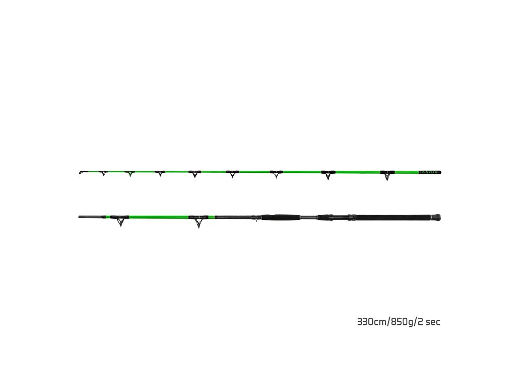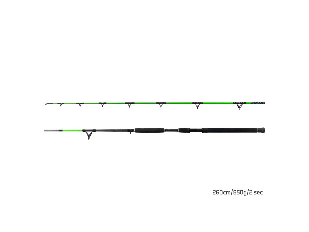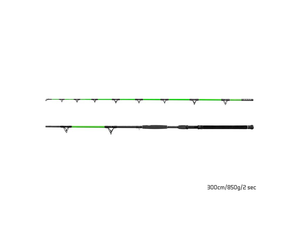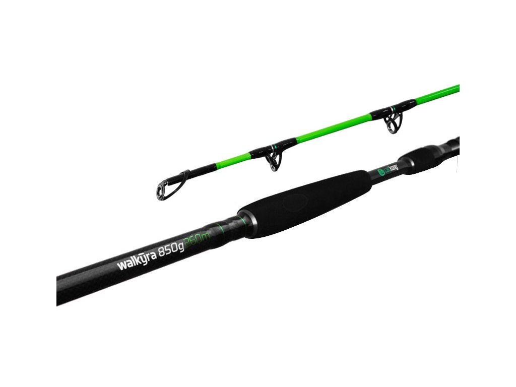 Značka Delphin přináší na evropský trh tento extrémní prut pod svou sumcařskou divizí Catkong. Prut byl kompletně navržen a designovaný na Slovensku. Walkýra je výsledkem dlouhých testů a mnoha inovativních řešení. Prut je určen na ty největší jedince z místních hlubin, nebo proslulých zahraničních revírů. Sumcařský prut Catkong Walkýra je postavena na uhlíkovém, silnostěnném blanku s vrhací zátěží 850g! Je tedy výjimečně tuhý, s plynulou parabolickou akcí, což dovoluje jeho zatížení bez jakéhokoliv limitu! Osazený je očky, které jsou postaveny na extrémně silném kovovém rámu s vnitřní výplní SIC, která dovolují použití extrémních šňůr. Spoj prutu je dodatečně zesílen vrstvou karbonu navíc. Pro extrémní použití bylo použito masivní, celokovové sedlo navijáku s pojistnými maticemi. Celkový komfort dotváří ergonomický navržená rukojeť s maximálním důrazem na pohodlné uchopení a ideální páku. Technické parametre: Model: 260cm/850g Počet dílů: 2 Počet oček: 9 Priemer blanku nad rukoväťou: 11mm Hmotnost: 573g Rukojeť: dělená, EVA pěna Transportní délka: 138cm Sedlo: kovové s pojistkou Naváděcí očko: 30mm Model: 300cm / 850g Počet dílů: 2 Počet oček: 11 Průměr blanku nad rukojetí: 17,8mm Hmotnost: 660g Rukojeť: dělená, EVA pěna Transportní délka: 157cm Sedlo: kovové s pojistkou Naváděcí očko: 30mm Model: 330cm /850g Počet dílů: 2 Počet oček: 11 Průměr blanku nad rukojetí: 19 mm Hmotnosť: 680g Rukojeť: dělená, EVA pěna Transportní délka: 171 cm Délka rukojeti (od spodní části prutu po střed sedla): 48cm Sedlo: kovové s pojistkou Naváděcí očko: 30mmDoplňkové parametry