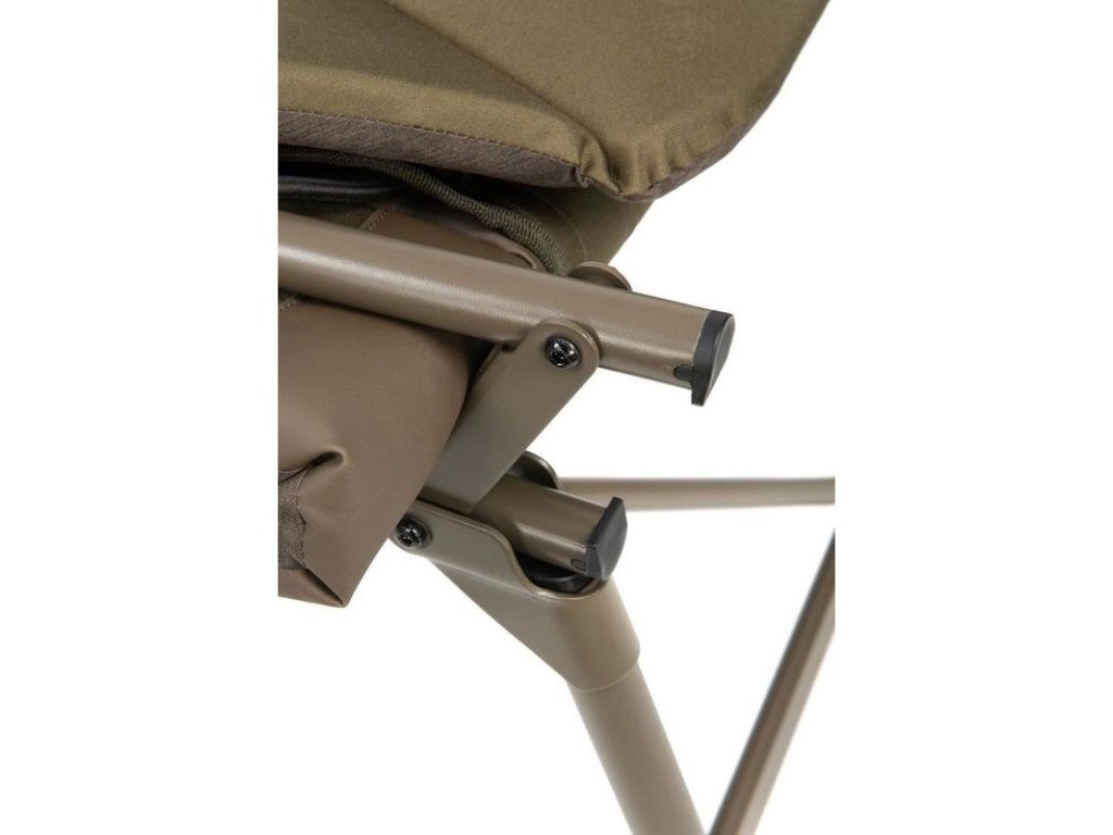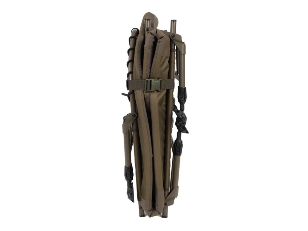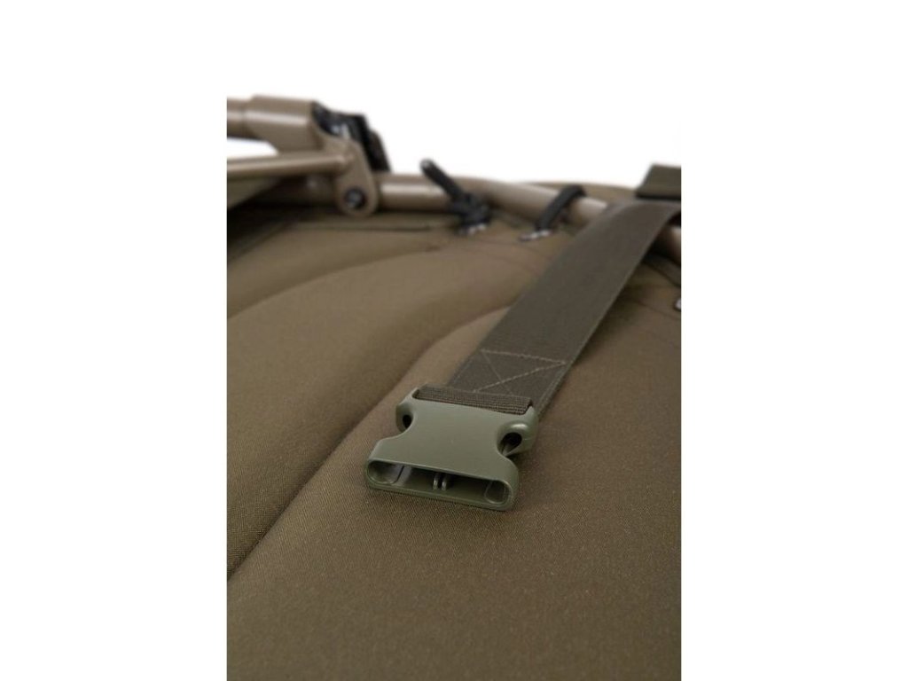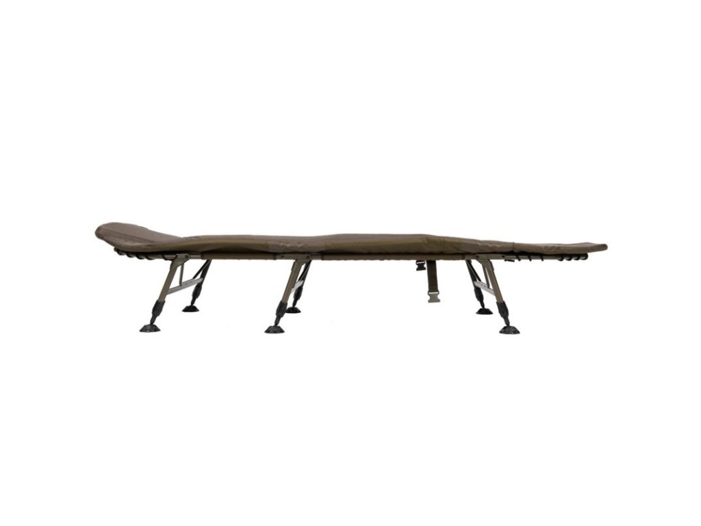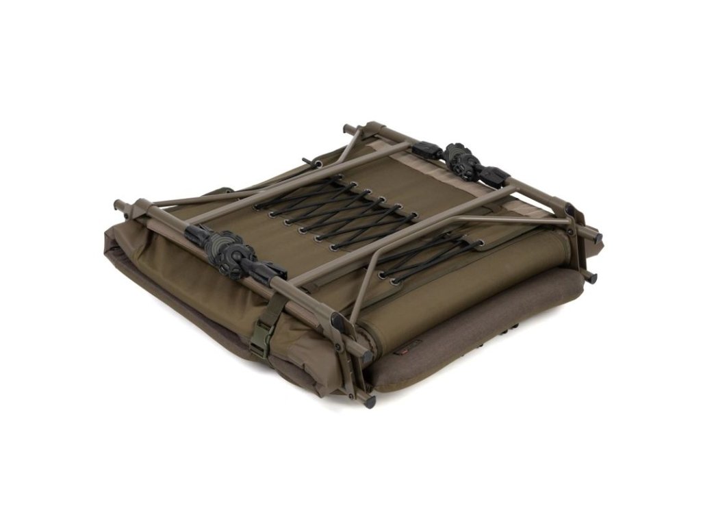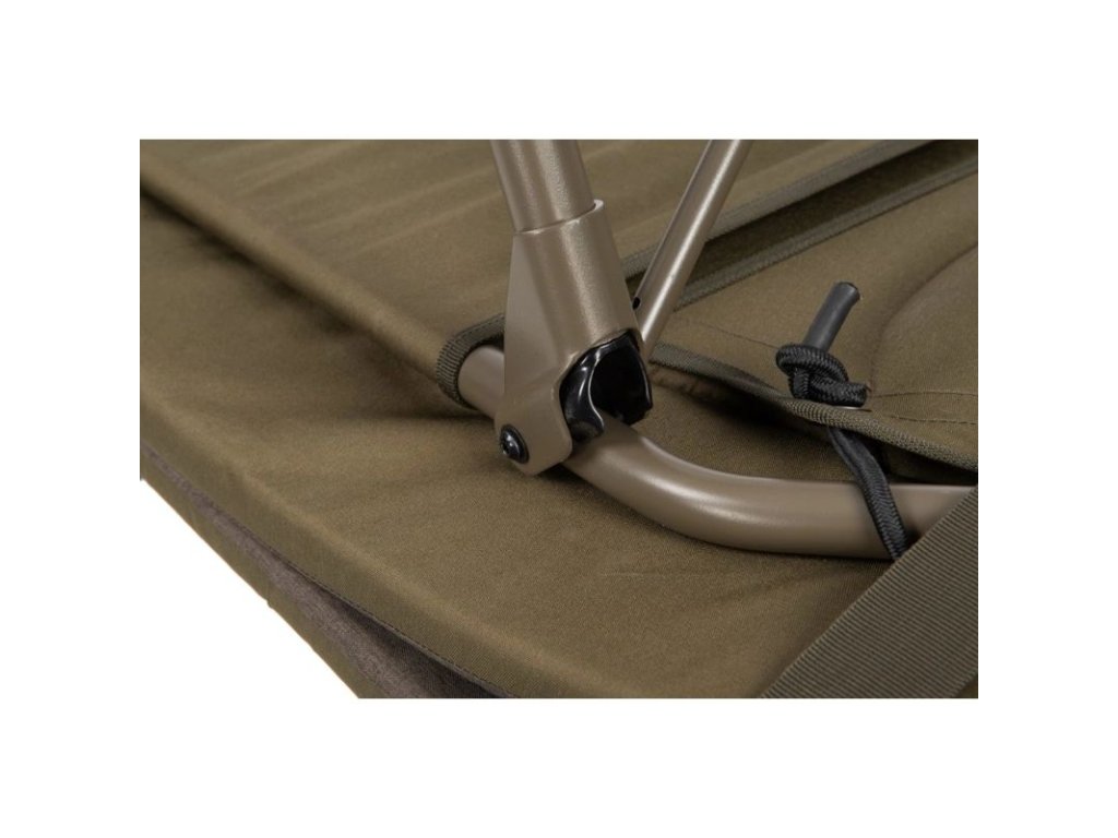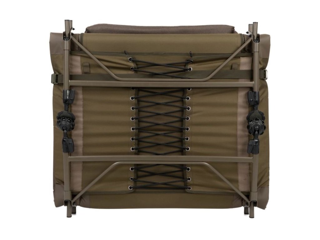 je kompaktní kaprařské lehátko určené pro krátké i vícedenní vycházky, když potřebujete pohodlné spaní, ale zároveň řešíte prostor v autě nebo v bivaku. Konstrukce s bočními napínacími popruhy drží lehátko při transportu stažené do menšího balíku a usnadňuje manipulaci. Šest výškově nastavitelných nohou s kloubovými bahenními patkami pomáhá stabilně postavit lehátko i na nerovném břehu a doladit výšku podle terénu a typu podložky.