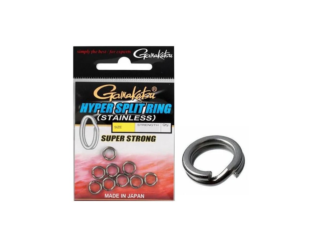 GAMAKATSU Hyper Split Ring Super Strong jsou extrémně pevné spojovací kroužky určené pro náročné použití v přívlačovém i mořském rybolovu. Jsou navrženy tak, aby bezpečně odolaly vysokému zatížení při lovu silných dravců a zachovaly maximální spolehlivost celé sestavy.