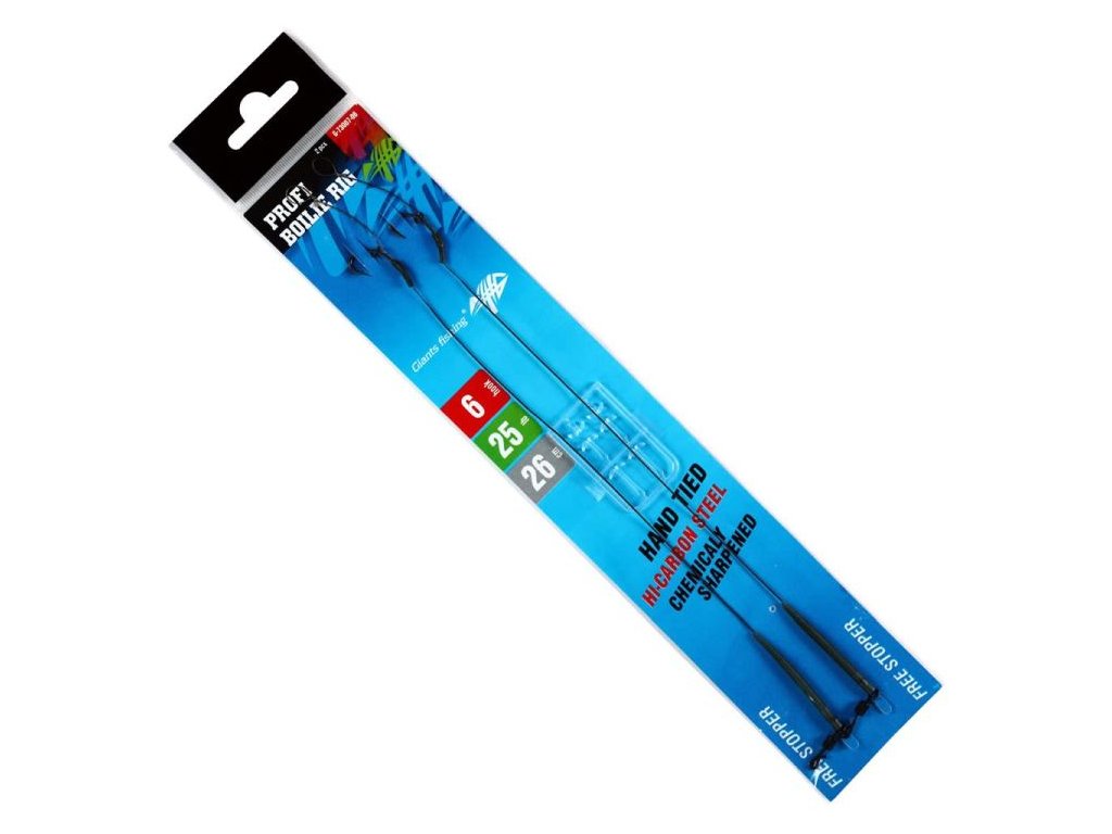 GIANTS FISHING Kaprový návazec Profi Boilie Rig 25lb je hotový kaprový návazec určený pro pohodlné a spolehlivé nastražení boilies. Vyroben je z pevné a odolné pletené šňůrky s nosností 25 lb, která poskytuje dostatečnou sílu i při zdolávání velkých kaprů. Osazen je kvalitním ostrým háčkem s očkem a smyčkou pro snadné uchycení nástrahy pomocí vlasového přívěsu. Díky profesionálnímu provedení je návazec připravený k okamžitému použití a šetří čas u vody.