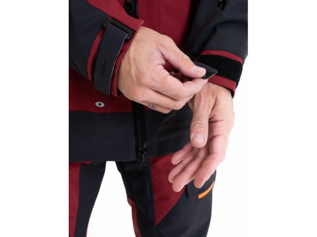 Bunda i kalhoty jsou vyrobeny z vysoce odolného třívrstvého materiálu BRATEX® s nepromokavou membránou, který zaručuje 100% voděodolnost (vodní sloupec 10 000 mm) a zároveň vysokou prodyšnost (5 000 g/m²/24h). Díky tomu zůstává uživatel v suchu a pohodlí i při dlouhodobém vystavení dešti nebo silnému větru. Vnitřní mikroporézní vrstva odvádí vlhkost z těla ven, takže se oblek nelepí a neomezuje v pohybu.