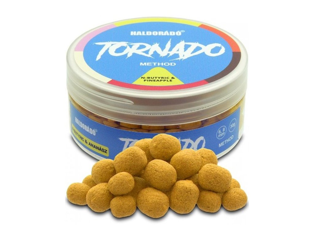 HALDORADO Tornado Method 6–8 mm jsou speciálně vyvinuté plovoucí nástrahy na háček určené pro method feeder techniku. Díky své menší velikosti, atraktivnímu tvaru a intenzivnímu aroma rychle zaujmou i opatrné ryby. Dvouvrstvá konstrukce spojuje měkký vnější obal s voňavým jádrem, které se postupně uvolňuje a vytváří silný pachový signál.