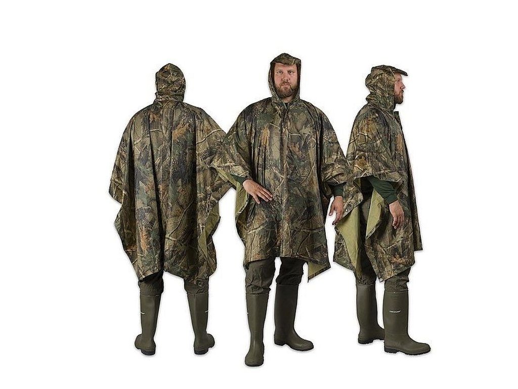 Volný střih poskytuje dostatek prostoru pro vrstvené oblečení i manipulaci s pruty a výbavou. Kapuce se stahováním chrání před větrem a boční zapínání brání pronikání vody. Pončo je velmi skladné, snadno sbalitelné a vejde se do jakékoli tašky či batohu.