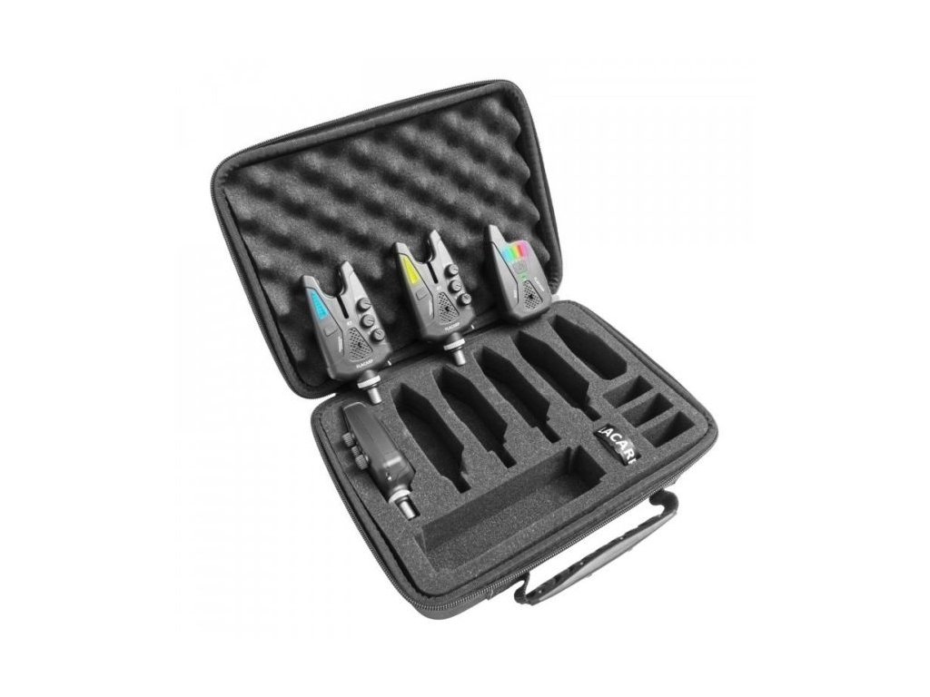 Sada signalizátorů FLACARP X7 + přijímač FLACARP RX7, ochranné pouzdro, šňůrka na krk, sada kvalitních baterií GP Ultra alkaline. Vyberte si velikost sady v horním menu. Nabízíme variantu 2+1, 3+1 a 4+1. Nové špičkové signalizátory záběru FLACARP X7 jsou vybaveny revolučním ultracitlivým snímačem, reagujícím již od cca 1,5mm potahu vlasce v obou směrech (i padák) s možností regulace délky potahu v širokém rozsahu. Přidali jsme nový rozsah tónů od oblíbeného hlubokého „kvákání” až po vysoké tóny s plynulou regulací hlasitosti. A nechybí ani oblíbená optická signalizace s možností nastavení barvy a jasu RGB LED. A k tomu všemu extrémní mechanická odolnost a bezstarostné napájení běžnými tužkovými články AAA. Základní vlastnosti signalizátor FLACARP X7_ Nové snímání s ultra-jemným vyhodnocením potahu vlasce v obou směrech s možností nastavení délky potahu vlasce v širokém rozsahu Tlačítko pro snadné ovládání funkcí (MUTE, poziční LED ...) Páčkový přepínač pro snadné a intuitivní zapnutí a vypnutí Zvukový měnič s velkým výkonem a odolností i proti silnému dešti Intuitivní RGB LED signalizace ukazující směr odvíjení vlasce (padák) Možnost nastavení barvy a jasu RGB LED (možnost vypnutí LED) Akustická signalizace s regulací výšky tónu a hlasitosti Integrován bezdrátový příposlech s velkým dosahem Poziční noční LED dioda Přehledná signalizace stavu baterie Konektor pro připojení swingeru (JACK 2,5mm) Neuvěřitelná pevnost materiálu: nepraskající krabičky a neprotáčející se šrouby- Odolnost proti dešti zajišťuje sada těsnění Kovová oska kladky se ani při rychlé jízdě „nezapeče” Napájeno běžnými články velikosti AAA (mikrotužky) Základní vlastnosti a funkce příposlechu FLACARP RX7_ - věrný přenos odvíjení vlasce - vyhodnocení zpětného směru (padák) - dosah (vzdálenost) od signalizátorů záběru až 1500 metrů* - výkonná zvuková signalizace s regulací hlasistosti - nově osazeno odolným piezokeramickým reproduktorem - vyhodnocuje alarm od nových čidel FLACARP-SENS i FLACARP AL1(AL2) - multibarevná RGB LED signalizace - paměťová funkce LED s rozlišením padáku - vibrace (lze zapnout / vypnout) - napájení běžnými bateriemi 2xLR03 (mikrotužka AAA) - dlouhá výdrž baterie - signalizace stavu baterie Mechanické vlastnosti přípsolechu RX7_ - výška přijímače 90mm - šířka přijímače ve spodní části 50mm, v horní (pod anténou) 39mm - tloušťka přijímače 26,5mm (meřeno ve spodní části) - možnost zavěšení na krk (poslední obrázek), šňůrka součástí balení * extrémní dosah vysílače je u našich výrobků zcela unikátní. Není zde proto, aby byl rybář příliš vzdálen od prutů, ale zaručuje velmi dobrou prostupnost přes překážky, např. hráze, terénní nerovnosti a jiné překážky, zejména kovové. Dosah se uvádí ve volném prostoru (přímá viditelnost), překážky, zejména kov, železobeton, terén, jej výrazně zkracují. Výkon našeho příposlechu Vám zaručí spolehlivý přenos záběru i v náročných podmínkách, kde ostatní výrobky selhávají.Doplňkové parametry