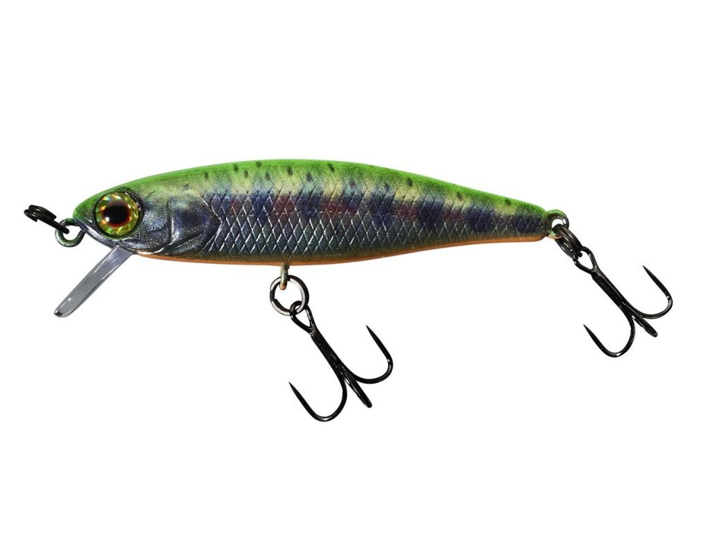 ILLEX wobler Tiny Fry 5,0 cm RT SP RT Visible Yamame je pstruhový wobler navržený pro lov pstruhů a jelců v rychle i pomalu proudících tocích, kde je potřeba přesně vést nástrahu v proudu a často ji na moment zastavovat v místě, kde ryby stojí. Má lehce agresivní akci s vytáčejícími se boky, která funguje při plynulém přitahování i při kratších škubnutích, a dokáže vyprovokovat dravce i v situaci, kdy nástrahu jen „podržíte“ v proudu. Neutrální vyvážení (suspending) znamená, že po zanoření zůstává ve zvolené hloubce – nestoupá ani neklesá – což je výhoda při prochytávání proudových hran, tišin za překážkami i mělčích pasáží, kde nechcete nástrahu zvedat k hladině ani ji nechat padat ke dnu. Realistické zbarvení věrně imituje přirozené rybky a u vybraných dekorů se používají i UV prvky pro lepší viditelnost ve zhoršených podmínkách.