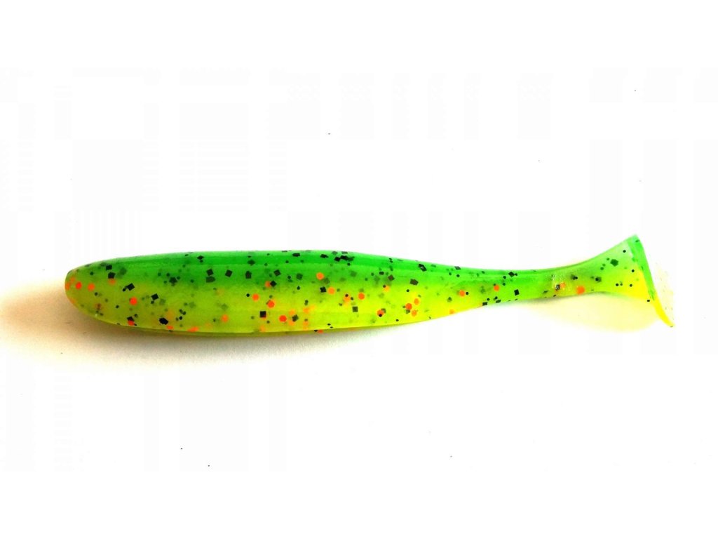 Ploché tělo EasyShineru se neodolatelně naklání do stran a udává tak rytmus v jakém pracuje jeho ocasní část zakončená kopýtkem. Nástraha je vyrobena z extra měkkého silikonu, obsahuje hrubé kousky soli a atraktant s příchutí olihně, jehož vůně je nesmírně účinná při chytání okounů, candátů, štik i pstruhů. Ve větších velikost je vhodný taktéž k lovu sumců. Na spodní i horní straně se nacházejí otvory, díky kterým se dá dokonale nastražit na Widegape nebo Offset háček. Část umělé nástrahy mezi tělem kopýtkem na ocásku je velice tenká což zajišťuje, že KeitechEasyShiner se lákavě a výrazně pohybuje jak do stran, tak lákavě kmitá ocáskem i při velice pomalém vedení, či samotném propadu nástrahy vodním sloupcem. Je to do slova legendární a fantastická nástraha z dílny KEITECH pro přívlač, vhodná na lov pstruhů, okounů, candátů a štik. Nástrahu lze vláčet na klasickéjigové hlavičce, drop shotu, Carolina či Texas návazcích.