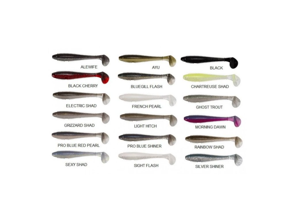 - Široká škála barev a velikostí: Dostupné ve velikostech od 2,8" až po 5,8", což umožňuje lov jak menších ryb, tak i velkých dravců. Barevné variace pokrývají všechny podmínky od čisté vody po kalné prostředí.
