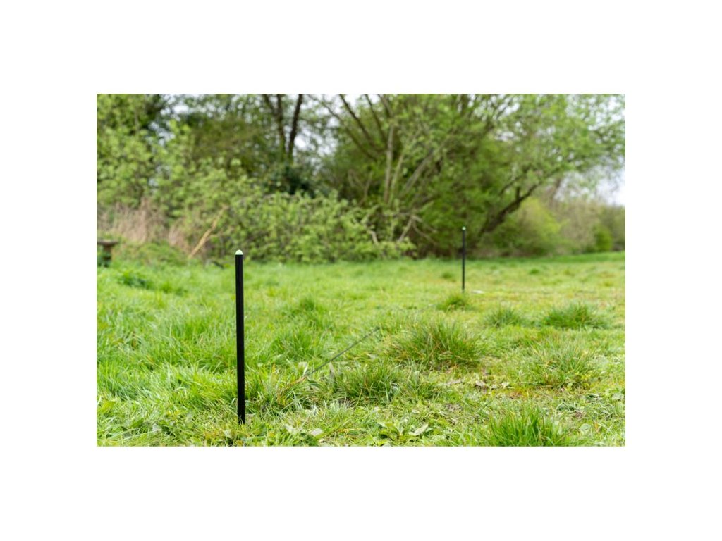 Tyče jsou vyrobeny z lehkého, ale odolného materiálu a vybaveny výraznými špičkami pro snadné zapíchnutí do země i v tvrdším terénu. Součástí je také odměřovací šňůra s jasně vyznačenými značkami pro jednoduché a přesné měření.