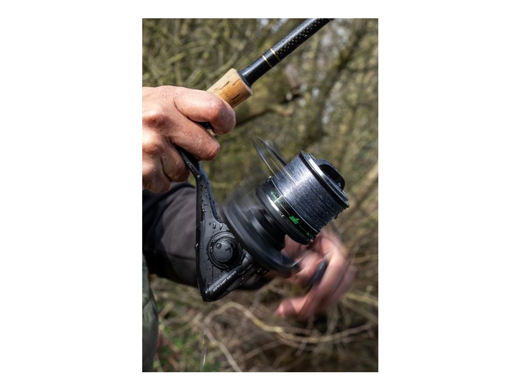 KORUM naviják Zelos Distance 6000 je feederový naviják navržený pro lov na dlouhé vzdálenosti a cílený lov větších ryb na řekách i stojatých vodách. Vyvážené tělo a převod 4,7:1 umožňují plynulé navíjení při práci s těžšími krmítky a při zdolávání v proudu, přičemž návin 90 cm na otočení pomáhá rychle zvedat montáž z hloubky a udržet kontrolu nad rybou. Rychlá přední brzda (quick drag) dovolí okamžitě přejít z volnějšího nastavení na pevné dotažení bez zbytečného otáčení, což je praktické při záběrech na dálku. Dva vlasci šetrné zaklapávací klipy usnadňují přesné opakované nahazování na stejnou vzdálenost při zakrmování i při chytání, bez zbytečného poškození vlasce. Anti-twist rolníčka omezuje kroucení při častém přehazování a při používání tenčích průměrů, worm shaft systém přispívá k rovnoměrnému ukládání vlasce pro čistší odhozy a menší riziko smyček. Ochrana rotoru proti padání vlasce (floating line rotor guard) snižuje šanci zachycení vlasce pod rotor, což se hodí při dynamickém feederu a práci s napnutou šňůrou. Obráběná klička s měkčeným úchopem zlepší jistotu při navíjení i v chladu nebo za mokra a nerezová ložiska podporují hladký chod při dlouhodobém používání.