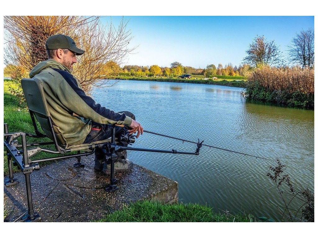 je teleskopické feederové rameno pro uchycení na nohu rybářského křesla nebo bedny, které vytvoří stabilní oporu prutu bez potřeby zapichování vidliček do země. Rameno má nastavitelný kloub pro změnu sklonu, takže si snadno nastavíte výšku špičky podle místa – od nízké pozice na stojaté vodě až po vysoké vedení vlasce nad proudem na řece. Díky teleskopickému vysunutí pokryje krátké i dlouhé pruty a rychloupínací hlava umožní okamžitou výměnu typu podpěry (V-koncovka, feeder opěrka apod.) podle podmínek u vody. Uchycení je navržené pro běžné průměry a profily nohou křesel, takže rameno využijete napříč různými sestavami.