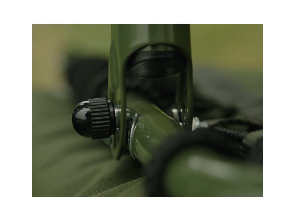 Konstrukce z pevné kovové slitiny zajišťuje vysokou nosnost až 200 kg, přičemž si lehátko zachovává nízkou hmotnost a snadnou přenositelnost. Výškově nastavitelné nohy lze prodloužit až do 52 cm, což usnadňuje vstávání i lehání, a zároveň vytváří pod lehátkem praktický prostor pro uložení vybavení.
