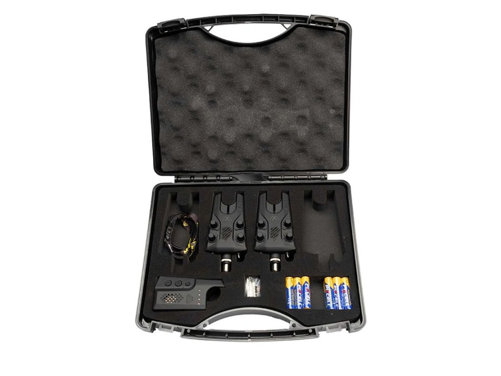 MIKADO M-BITE II Carp Set 2+1 je kompletní sada moderních elektronických signalizátorů určená pro kaprařinu i dlouhodobé vyvážky. Obsahuje dva samostatné hlásiče a jeden přijímač s dlouhým dosahem, díky čemuž máš přehled o záběrech i při větší vzdálenosti od prutů.