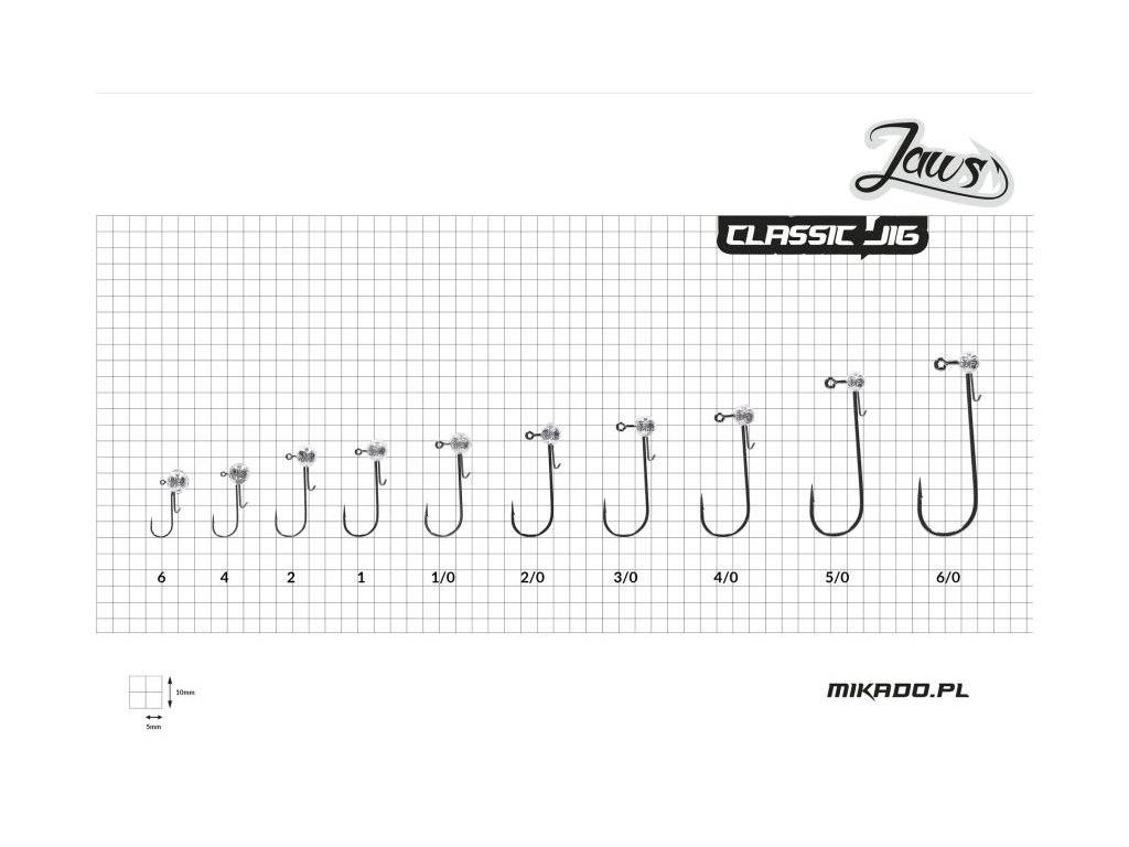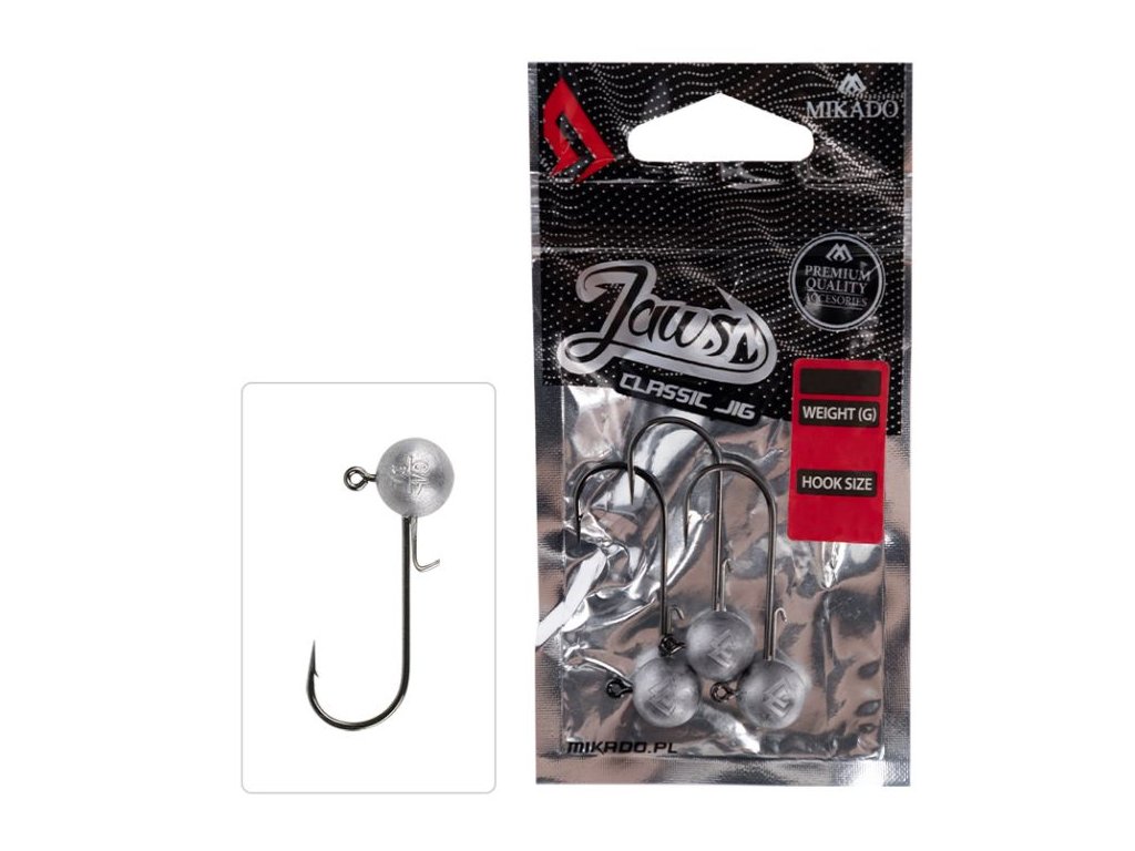 MIKADO Jig Head Jaws Classic je spolehlivá jigová hlavička s klasickým kulovým tvarem, navržená pro široké spektrum přívlačových technik. Osazena je ostrým a pevným háčkem série Jaws, který zajišťuje jistý zásek i při kontaktu s tvrdším patro dravce. Kvalitní povrchová úprava chrání hlavičku před korozí a opotřebením i při lovu v náročnějších podmínkách.