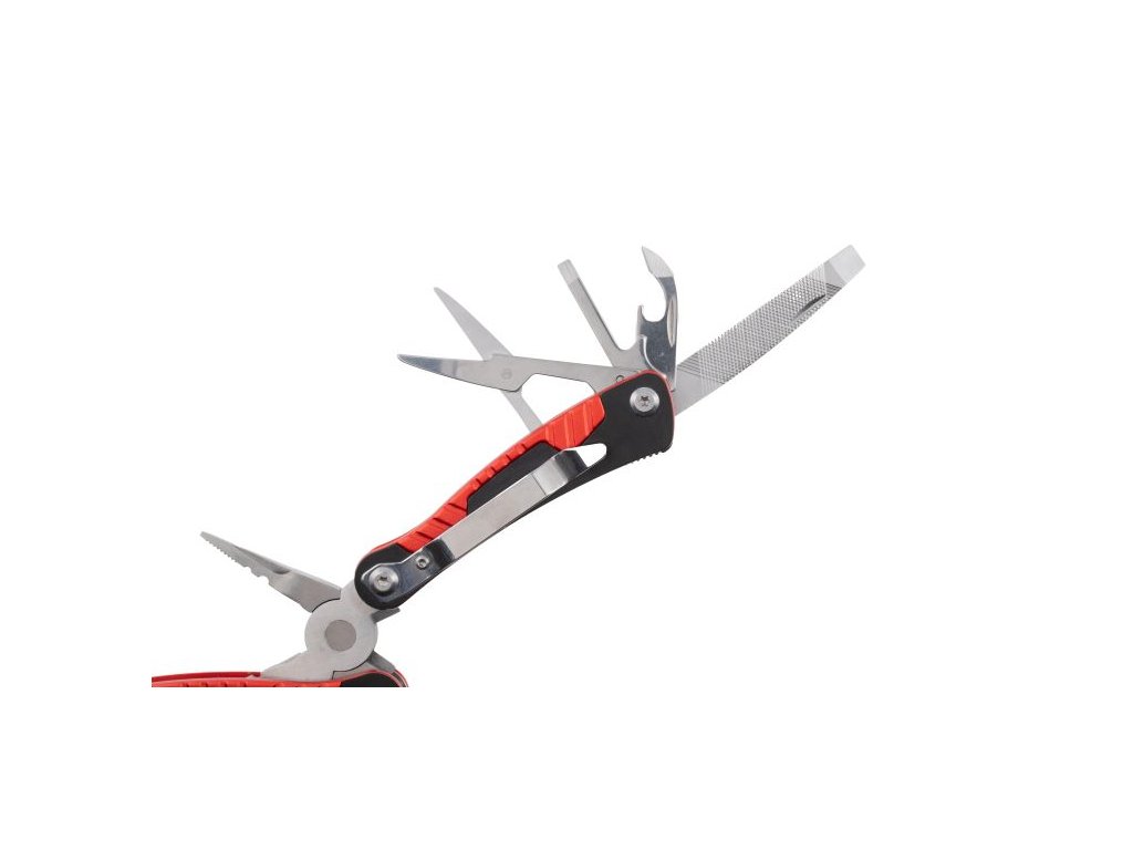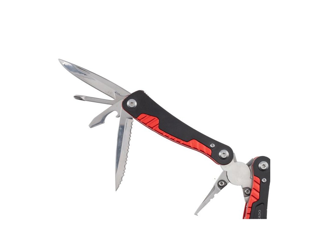 Základ tvoří pevné multifunkční kleště, doplněné o další nástroje jako jsou nožík, pilka, otvírák na lahve, otvírák na konzervy, křížový a plochý šroubovák, pilník, jehla, a další. Díky ergonomickému tvaru a skládacímu designu je multitool snadno přenosný a bezpečně skladný – vejde se do kapsy, batohu nebo rybářského kufříku.