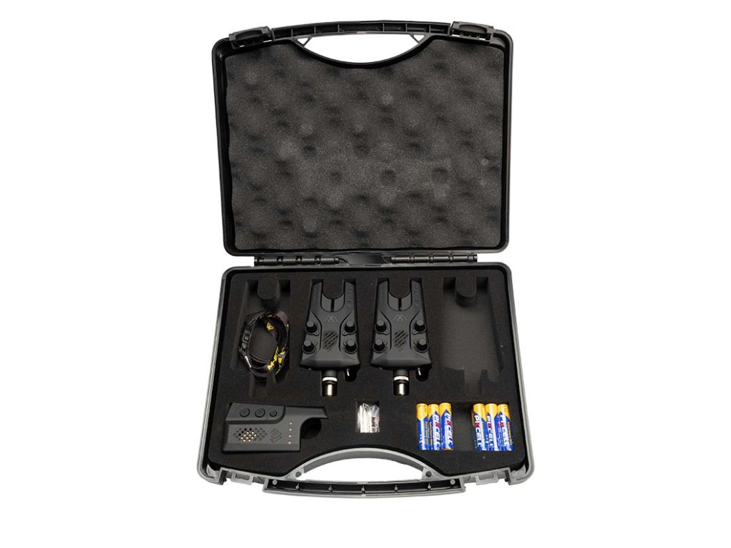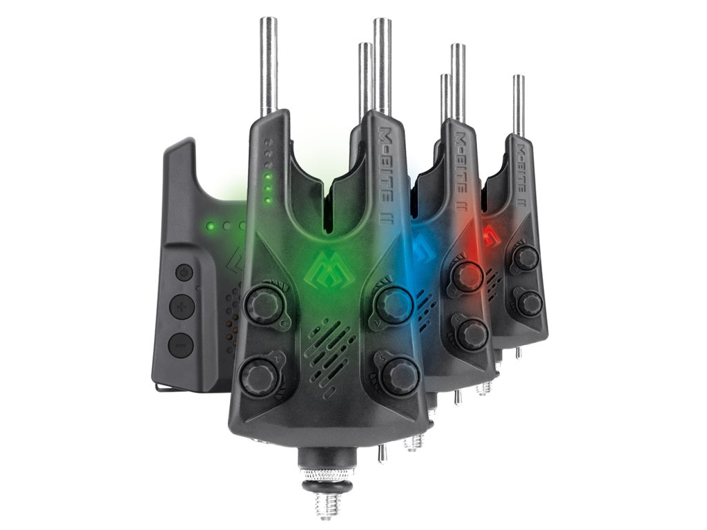 MIKADO SIGNALIZÁTOR - CARP - M-BITE II (SET 3+1) - 1sadaMIKADO M-Bite II je vyspělá sada signalizátorů určená pro kaprový rybolov, dodávaná v sestavě 3 signalizátory + 1 příposlech a praktickým transportním kufříkem. Každý signalizátor má podsvícené logo, plynule svítící LED lištu a 6stupňové nastavení hlasitosti, citlivosti, tónu i barvy LED diod. Praktická tlačítka a otočné ovladače na přední straně usnadňují ovládání i v rukavicích. Příposlech s dosahem až 220 m umožňuje rozlišení jednotlivých kanálů, má vibrace a světelné i zvukové upozornění.