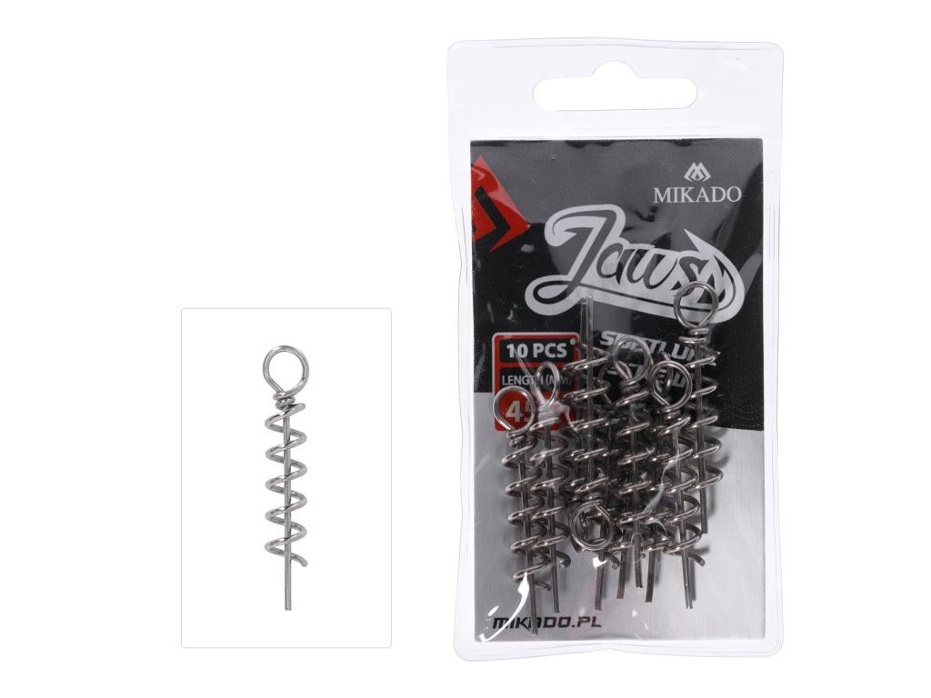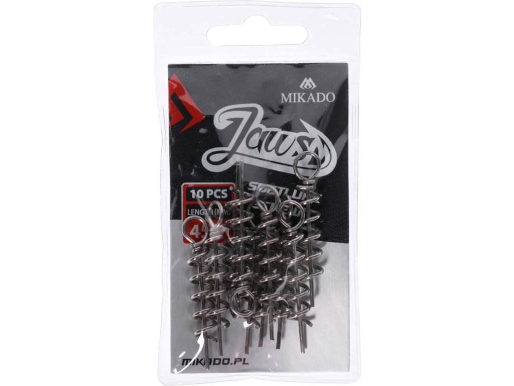 MIKADO Jaws Šroub na zbrojení měkkých nástrah je praktický a spolehlivý nástroj navržený pro rychlé a bezpečné uchycení měkkých nástrah, jako jsou gumové rybičky či twistery. Tento šroub umožňuje snadné připevnění nástrahy bez potřeby použití jigové hlavičky, což zlepšuje pohyblivost nástrahy a zvyšuje její atraktivitu pro dravé ryby.