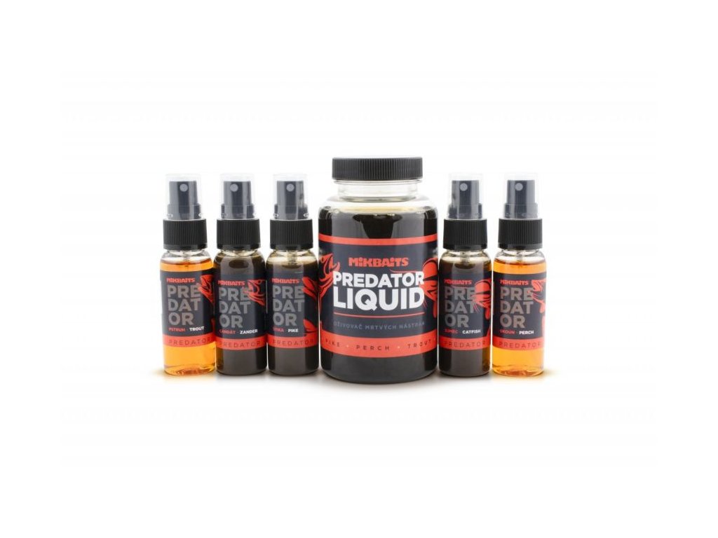 MIKBAITS Atraktor Predator Spray 30ml je koncentrovaný sprej určený k zatraktivnění umělých i přírodních nástrah při lovu dravých ryb. Díky silnému aromatickému složení okamžitě zvyšuje jejich účinnost a provokuje predátory k útoku. Praktické balení ve spreji umožňuje snadnou a rychlou aplikaci přímo na nástrahu i během rybolovu.