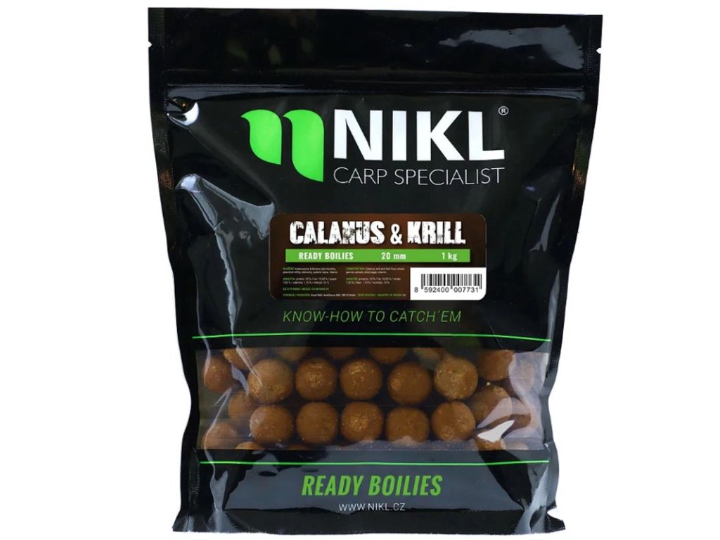 jsou hotové boilies s výrazným mořským potravním profilem calanusu a krillu určené pro kaprařinu, když chcete rychle nasadit nástrahu bez další přípravy. Průměr 20 mm pomáhá selektovat větší ryby a drží prezentaci stabilní i při delším chytání nebo v přítomnosti bílé ryby. Boilies je vhodné jako samotná nástraha na vlasovém přívěsu, do kombinace „panáček“ s plovoucí nástrahou i pro bodové krmení kolem montáže. Díky hotovému provedení se hodí na krátké vycházky, závodní lov i jako doplněk k peletám, stick mixům a tekutým atraktorům stejného profilu pro sjednocení krmného signálu.