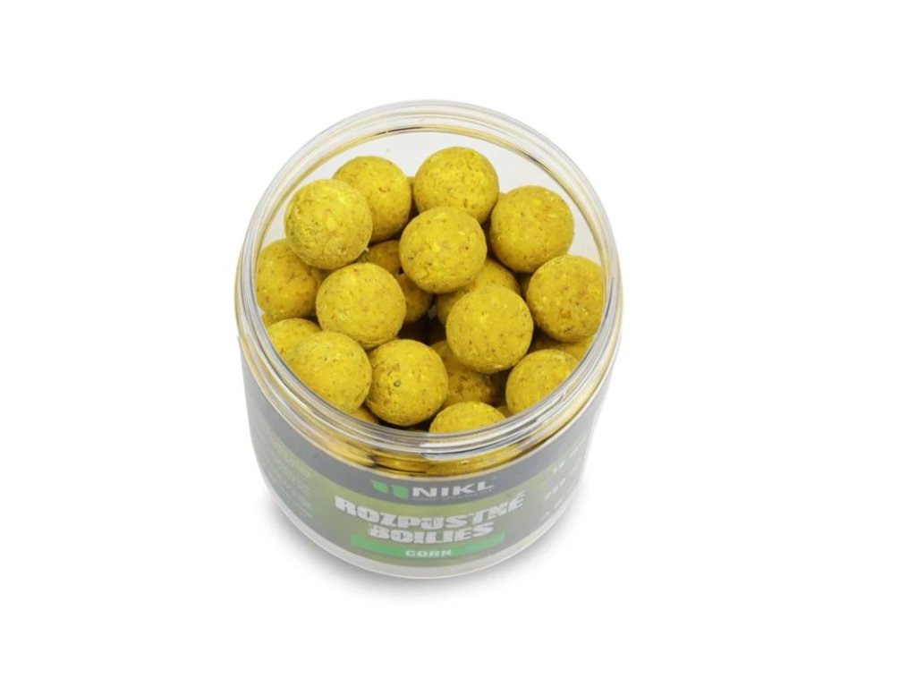 jsou rychle pracující rozpustné boilie s kukuřičným profilem, navržené pro okamžitou aktivitu na lovném místě. Po vhození do vody se kulička postupně otevírá a měkne, čímž uvolňuje výraznou stopu a pomáhá rychle přitáhnout ryby k montáži. Tato vlastnost je praktická při krátkých vycházkách, při aktivním prochytávání více míst nebo v období, kdy ryby sbírají spíše menší a snadno dostupnou potravu. Průměr 18 mm je univerzální pro běžné kaprařské montáže a dobře funguje jak při lovu na dně, tak při jemnější prezentaci, kdy chcete zaujmout i opatrnější ryby, ale současně omezit útoky drobné bílé ryby. Kukuřičný profil je přirozený a srozumitelný signál zejména na vodách, kde se často používá partikl, a boilie se dobře kombinuje s peletami nebo menším kobrováním kuliček kolem montáže, aby se podpořil rychlý první záběr.