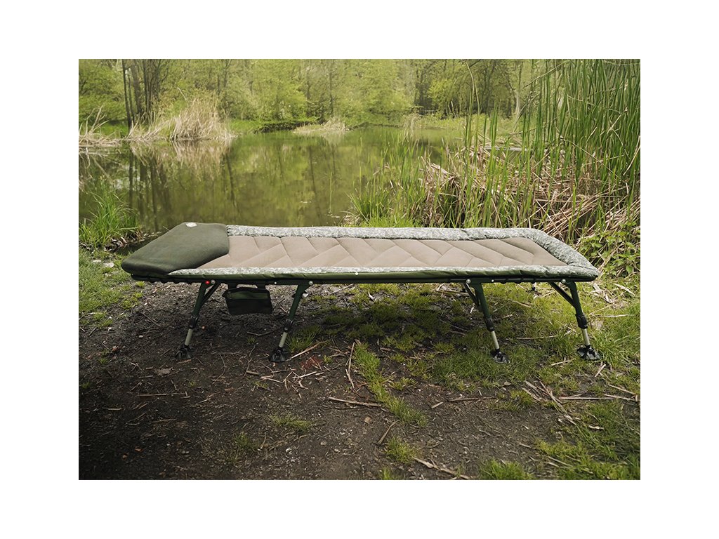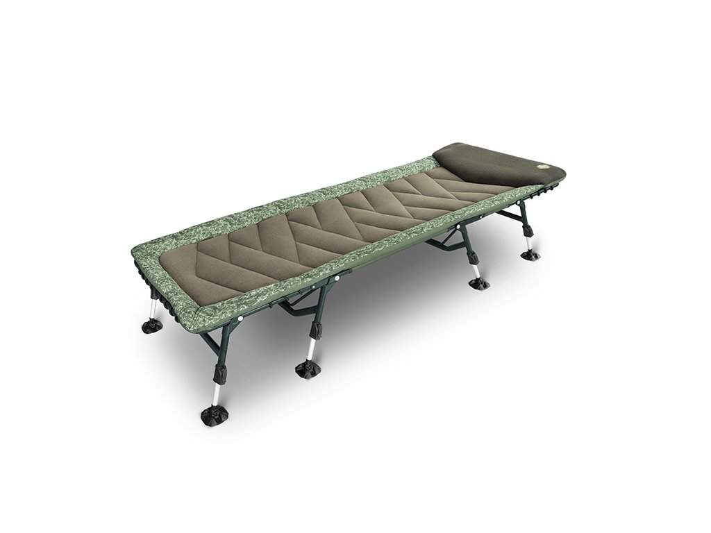 Rybářské lehátko DELPHIN EightLUX 8 C2GMaximálně pohodlné, osminohé lehátko, díky kterému se stane pobyt u vody vždy dokonalým a zaslouženým odpočinkem. Základ lehátka tvoří velmi stabilní konstrukce, která se kromě vysoké pevnosti vyznačuje nízkou hmotností a odolností vůči mechanickému poškození a vnějším vlivům. Na konstrukci je osazena silně polstrovaná matrace s efektním prošíváním, které dodává tomuto lehátku punc originality. Matrace je na povrchu potažena fleecem, čímž je velmi příjemná na dotek a výborně zahřeje během chladných dnů. Kromě toho je matrace po obvodu opatřena odolnou 600D látkou v jedinečném C2G designu. Pro maximální pohodlí je ve vrchní hlavové části extra polstrovaný fleecový panel tmavě zelené barvy. Ve středové části je matrace ze spodu dodatečně vyztužená a lze nastavovat její tuhost pomocí pevného gumového provazu. Všech 8 nohou je vybaveno robustními, flexibilními patkami, což jim umožňuje přizpůsobit se nerovnostem terénu. Pár nohou pod hlavou je navíc opatřen zajišťovacím mechanismem, což usnadňuje rozložení lehátka a zároveň zabraňuje nechtěnému sklápění či posunu. Lehátko je vybaveno také dvěma popruhy s masivními klipy na bocích, které zabraňují samovolnému rozevírání a usnadňují tak jeho transport ve složeném stavu. Jako bonus dostanete v základu praktickou závěsnou kapsu, poskytující možnost uložení mobilního telefonu, příposlechu, či dalšího drobného příslušenství. Všechny tyto devizy, spolu s komfortní matrací a jedinečným designem řadí EightLUX 8 mezi TOP produkty v kategorii rybářských lehátek.