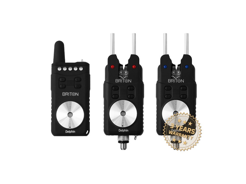 Sada signalizátorů Delphin BRITON 3+1Excelentně zpracovaná sada, která je promyšlená do nejmenšího detailu. Už na první pohled vás osloví minimalistický design, který je nadčasový a který tuto sadu předurčuje k tomu, aby i po letech používání vypadala stále aktuální a neotřele. První dotek se sadou je také nadmíru pozitivní. Použité jsou díly bezchybného zpracování, všechny lícují, zpracování je na velmi vysoké úrovni a použité jsou ty nejkvalitnější materiály, včetně ušlechtile zpracovaných hliníkových krytů reproduktorů. Ty jsou jednoznačně tím nejsilnějším designovým prvkem této sady. Všechny plastové části jsou zase hodnotně pogumované, což evokuje dojem výrazně dražších sad. Komplikovaný přístup k bateriím přes neforemné kryty je minulostí. BRITON se vyznačuje velmi dobrým přístupem k napájení, a tím přispívá k velmi rychlému osazení baterií před lovem. Přijímač i signalizátor jsou oba shodně napájeny třemi kusy baterií typu AAA. BRITON navíc v dlouhodobých testech vynikal neskutečně dlouhou výdrží baterií a byl testován opravdu v těch nejextrémnějších výkyvech počasí (-25 ° C až + 35 ° C). Sada má v závislosti na podmínkách (okolní terén, hustota porostu, kapacita baterií) reálný dosah až přes 200m! Navíc díky speciálnímu tvarování těla a překrytí elektroniky i výbornou odolnost vůči vodě. Ani hustý déšť napříště nepřeruší spojení vašeho přijímače se signalizátory. Spuštění probíhá pomocí pákových přepínačů. To zaručí, že bez nejmenšího problému dokážete sadu ovládat i v naprosté tmě. Navíc je statisticky tento mechanismus mnohem méně náročný na poškození. U přijímače i signalizátoru máte na výběr až z 8 různých tónů a 8 různých úrovní hlasitosti (včetně tichého módu). U přijímače je samozřejmostí vibrační mód, indikace slabé baterie a uchovávání nastavení v paměti. Pro komfortnější přenos je grátis popruh na ruku. Signalizátor poskytuje možnost podsvícení rolničky, osazení tzv. uší (snag gears), 5 úrovní citlivosti (od 0.8 až po 4.0cm), indikaci slabé baterie a vstup pro 2.5mm jack. Také nastavení uchovává v paměti. Rolničku lze mechanicky zablokovat pomocí magnetu, a tím pádem sada při osazování na rodpod nesignalizuje falešné záběry. Při koupi kompletní sady dostáváte automaticky pevný kufřík a podrobný návod v několika jazycích. Už po prvním použití sady však budete nadšeni, jak jednoduše probíhá celé její ovládání. Za kvalitou sady Delphin BRITON si jednoznačně stojíme. I to je důvod, proč poskytujeme na tuto sadu záruku až 3 roky!
