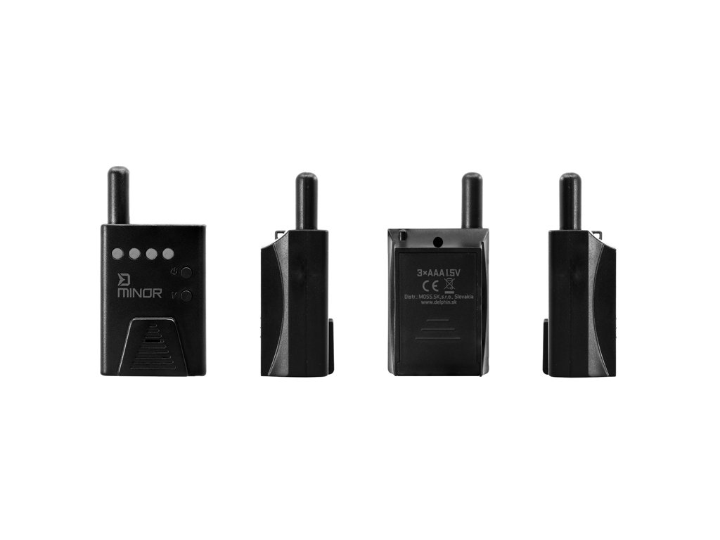 Sada signalizátorů DELPHIN MINORNeuvěřitelně kompaktní a originální sada signalizátorů s příposlechem, která se kromě svých minimalistických rozměrů vyznačuje skvělou výdrží baterie, spolehlivostí a velmi příznivou pořizovací cenou. Navzdory své ceně se však funkčností může bez problémů rovnat s podstatně dražšími sadami. Velkou výhodou je také jednoduchost ovládání signalizátorů a příposlechu. Signál mezi signalizátory a příposlechem se ve vhodných podmínkách dokáže přenést na vzdálenost až 110 metrů. Celá sada je dodávána v tvrdém plastovém kufříku, který se stará o bezpečnost při transportu.