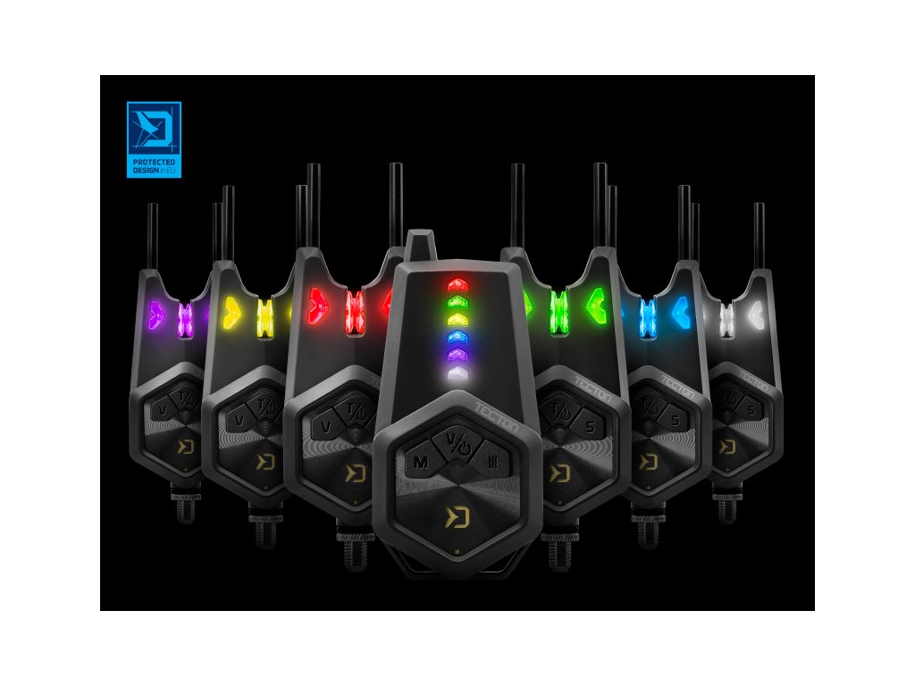 Pro zpětný záběr, resp. „padák“ budete upozorněni odlišným tónem signalizace. Pomocí tlačítka umístěného na signalizátoru vlevo (V) navolíte požadovanou hlasitost, včetně tichého módu. Tlačítko napravo (S) umožňuje vybrat jednu z 5 úrovní citlivosti. Součástí signalizátorů jsou odnímatelné snag gears, které se postarají o to, aby prut při prudkých záběrech v žádném případě nemohl „vyletět“ ze signalizátoru. V základní sadě 2+1 se nachází spolu s příposlechem červený a modrý signalizátor, ale v případě TECTONU je možné dokoupit až čtyři další barvy (žlutá, zelená, fialová, bílá). To dává možnost pořídit si k sadě signalizátory s barvou diody, jakou preferujete. To ovšem není jediná výhoda širokého spektra barev. Pozornému oku určitě neujde, že na přijímači se nachází až šest diod, což umožňuje spárování šesti různých signalizátorů TECTON na jeden příposlech, kdy různé barvy signalizátorů zajisté oceníte. Samotný příposlech se vyznačuje spolehlivým přijímáním signálu, v závislosti na podmínkách až do vzdálenosti 200 metrů.