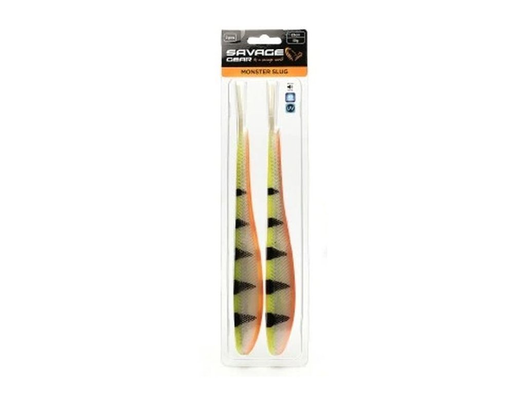 SAVAGE GEAR Gumová Nástraha Monster Slug je velká měkká nástraha navržená pro lov trofejních dravců, jako jsou štiky, sumci nebo velcí okouni. Díky svému robustnímu tělu a detailnímu zpracování imituje zraněnou rybku, což spolehlivě provokuje predátory k útoku.