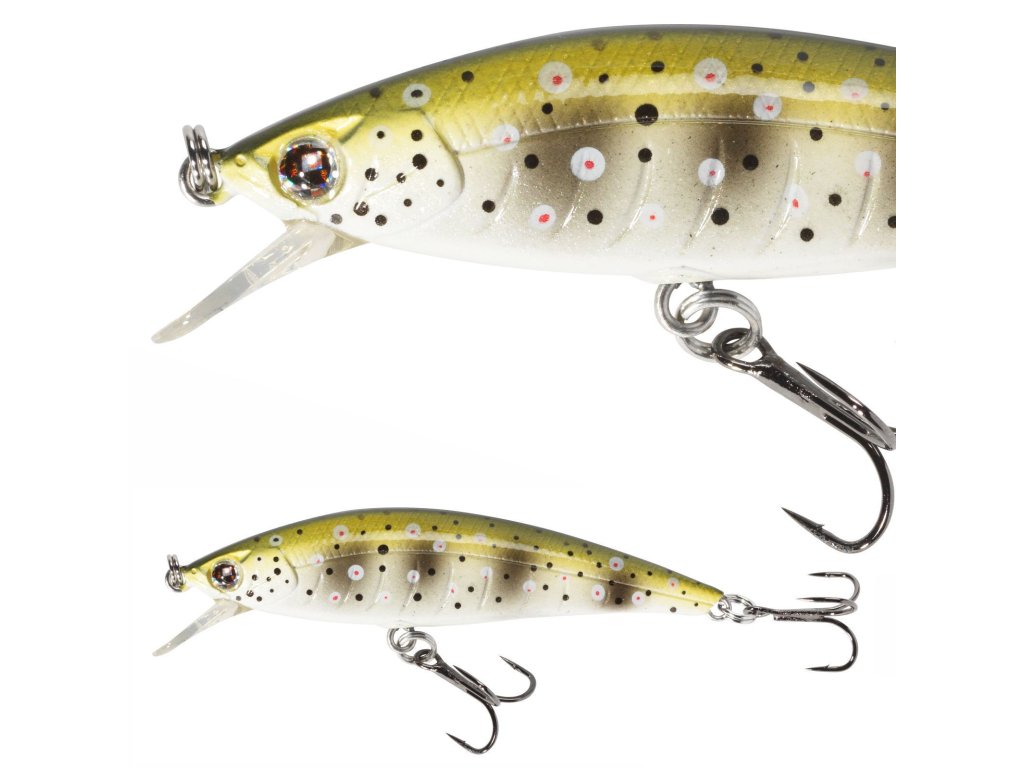 SEBILE Puncher 50 sk Native 3,5g je kompaktní wobler pro jemnou až středně jemnou přívlač, vhodný pro prochytávání proudnic, břehových hran a tišin, kde dravci sbírají drobný potěr. Díky vyšší hmotnosti 3,5 g oproti lehčím variantám se lépe nahazuje i proti větru a umožňuje přesnější zásah míst pod převisy, podél kamenů nebo mezi překážkami. Při vedení pracuje stabilně v celém rozsahu rychlostí – dá se vodit rovnoměrně, ale velmi účinné je i stop&go nebo krátké přizvednutí špičkou prutu, kdy wobler změní rytmus a imituje prchající či zraněnou rybku. V praxi funguje na řekách i stojatých vodách, zejména na mělčích úsecích, v zátokách a kolem struktury, kde ryby čekají na kořist. Dekor Native je laděný přirozeně, takže je vhodný do čiré až mírně zbarvené vody a pro situace, kdy jsou ryby opatrnější a reagují na realistický vzhled nástrahy. Typicky se používá na okouna, pstruha a tlouště, využitelný je i na menší štiku.