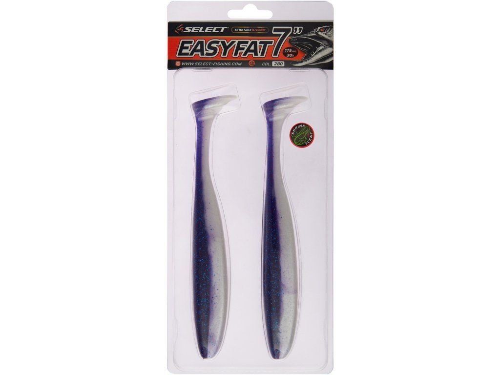 Gumová nástraha SELECT Easy Fat 7" 17,8 cm Barva #280 je větší gumová nástraha typu vibrotail (shad) určená pro přívlač se zaměřením na selektivnější lov dravců. Díky masivnějšímu tělu a aktivnímu ocasu pracuje výrazně i při pomalejším vedení, takže se hodí pro prochytávání hran, propadů, hlubších úseků i okolí překážek. Nejčastěji se používá na jigové hlavičce pro lov u dna, případně na offset háčku se zátěží pro vedení v porostech a mezi vázkami. Velikost 7" je vhodná hlavně na štiku a candáta, když potřebujete nabídnout větší profil nástrahy a udržet stabilní chod při změnách rychlosti tažení.