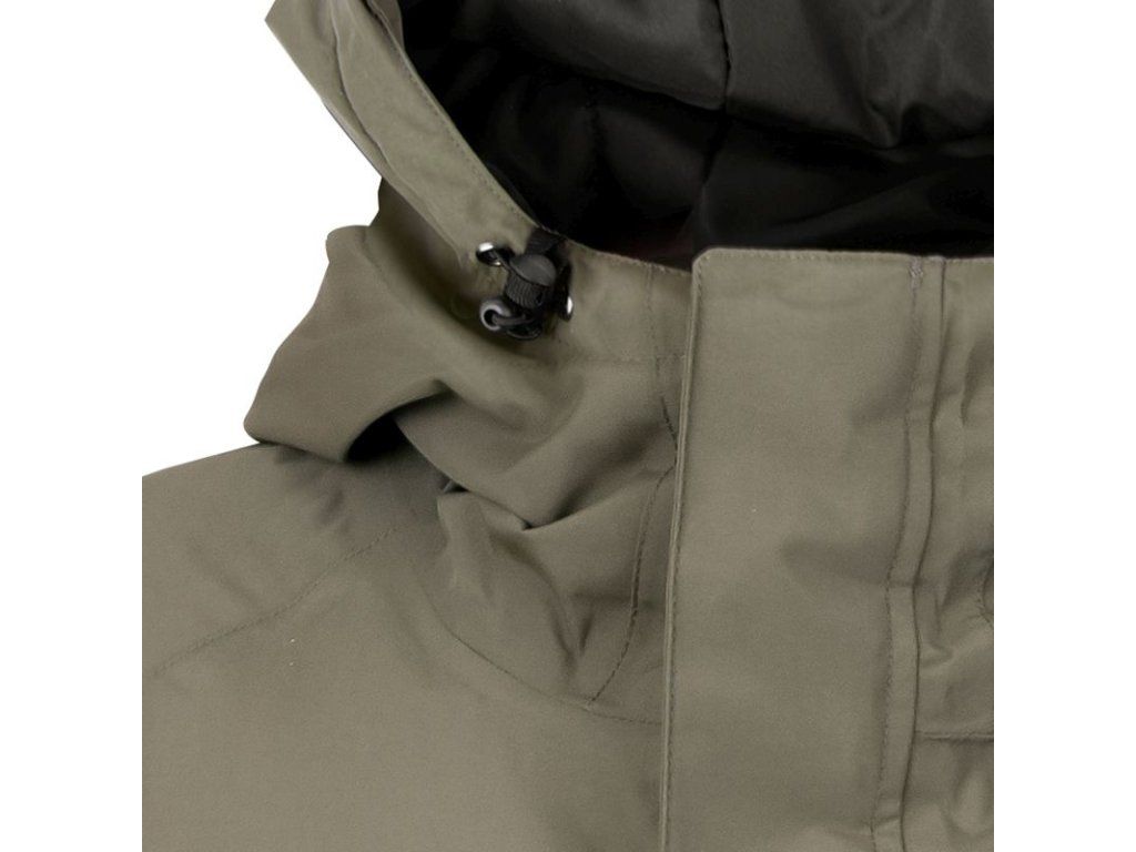 je zateplená nepromokavá rybářská bunda určená jako vrchní vrstva do deště a větru, případně jako součást vrstvení v chladnějším období. Střih je řešený tak, aby neomezoval pohyb ramen a paží při nahazování, což je praktické při celodenní přívlači i aktivním feederu. Voděodolná tkanina s hydrostatickou hlavou 20 000 mm pomáhá udržet komfort při vytrvalém dešti, zatímco dvojité strečové manžety, stahování kapuce a spodního lemu a V-tvarovaný regulátor kapuce omezují zatékání při práci u vody.