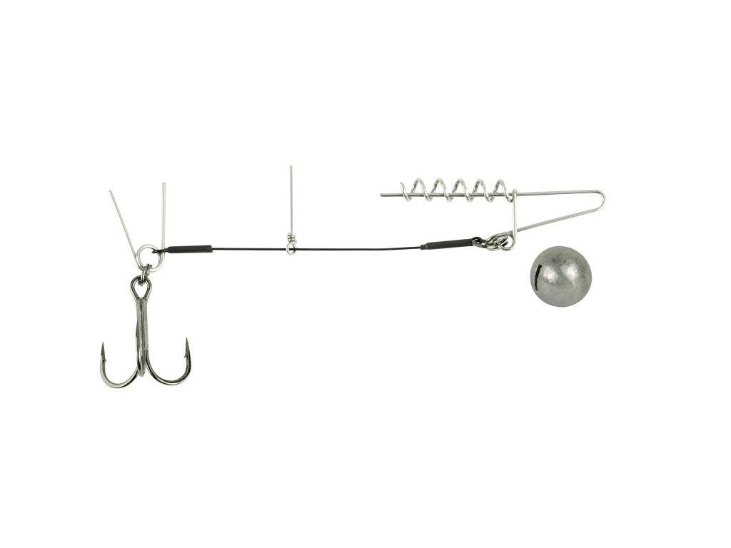 je spiralový stinger návazec určený pro montáž měkkých gumových nástrah při přívlači. Kovová spirála se zašroubuje do čela nástrahy a zajistí její pevné usazení bez sjíždění při opakovaných hodech nebo při vedení ve větší hloubce. Přídavný stinger háček slouží k lepšímu zachycení ryby při opatrných záběrech, kdy dravec bere nástrahu krátce nebo jen za zadní část. Tato montáž se hodí zejména pro lov štik a candátů (případně okounů) s většími gumami, při klasické přívlači, vedení u dna i při vertikálním lovu, protože udržuje nástrahu stabilně ve správné pozici a pomáhá proměnit více kontaktů v zásek.