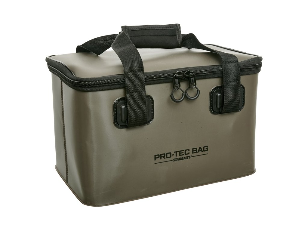 STARBAITS Nepromokavý box Pro Tec EVA Bag L je voděodolný úložný box na rybářské vybavení a nástrahy, který chrání obsah před deštěm, vlhkostí i nečistotami během přepravy a pobytu u vody. Konstrukce z odolného EVA materiálu s podlepenými švy a pevným dnem drží tvar, snáší časté používání a zajišťuje nepromokavost i v nepříznivém počasí. Díky uzavřenému provedení poslouží také jako praktická bariéra proti dotěrným hlodavcům při skladování krmení, boilies nebo dipů v bivaku či v autě. Měkké víko se zipem umožňuje rychlý přístup k obsahu bez zbytečného vyndávání věcí a robustní X-Strong zip je stavěný na dlouhou životnost i při plném naložení. Pevná madla usnadňují přenášení a rozměry verze L poskytují dost prostoru pro krabičky, dózy, lahvičky i drobné příslušenství, které chcete mít přehledně pohromadě a chráněné.