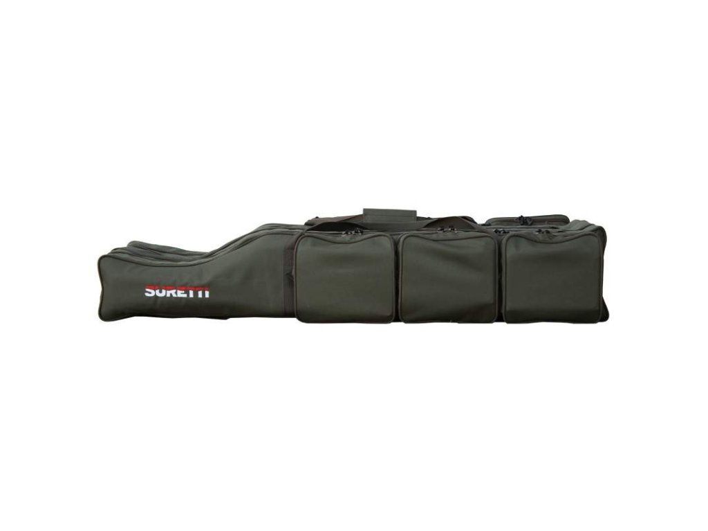 SURETTI Obal na pruty tříkomorový je ideálním řešením pro všechny rybáře, kteří potřebují spolehlivý a praktický obal pro své pruty. Jeho tříkomorový design a kvalitní zpracování zajišťují bezpečné a pohodlné přenášení prutů i veškerého příslušenství. Ať už se vydáváte na krátkou rybářskou výpravu nebo delší expedici, tento obal vám poskytne vše, co potřebujete.