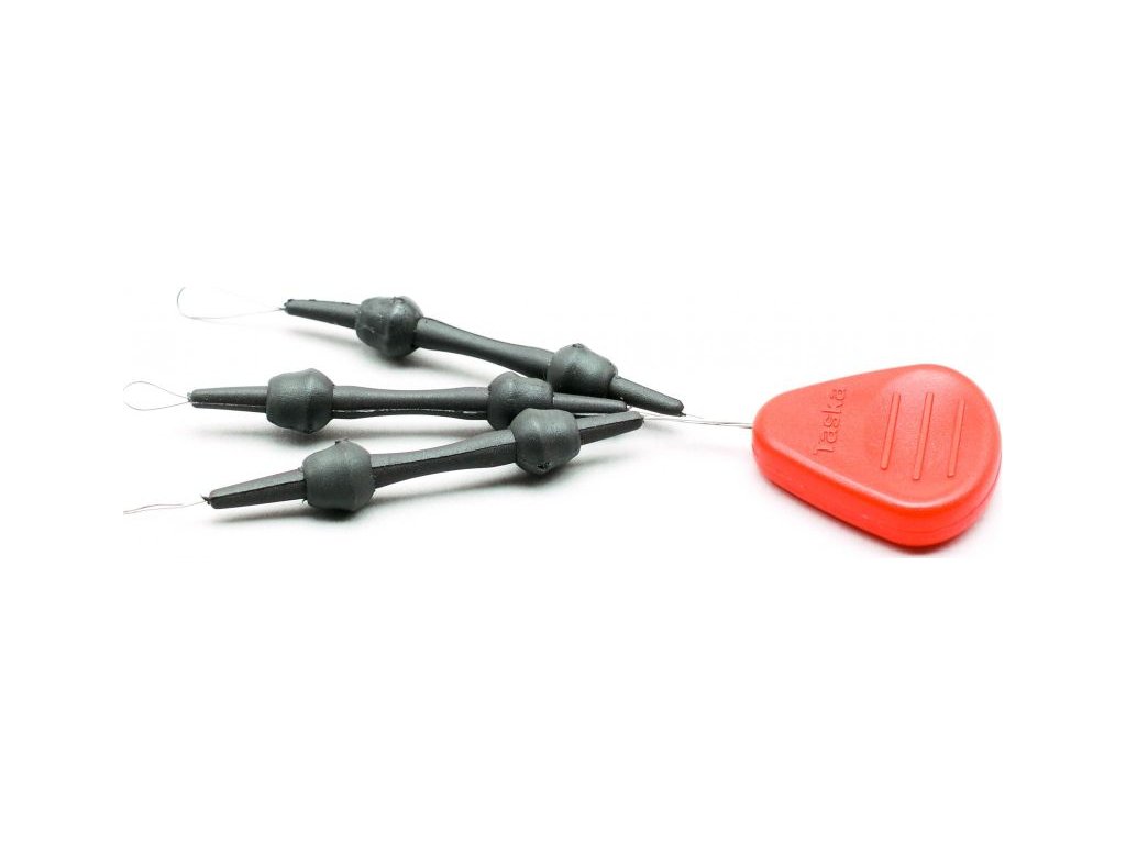 TASKA závěska na chod montáž 3ks je tungstenová závěska určená pro sestavení chod rig nebo helikoptérové montáže tam, kde potřebujete přesně vedený pohyb chod návazce a zároveň stabilní usazení celého systému na šokovém návazci či kmenovém vlasci. Díky vyšší hmotnosti dané obsahem wolframu pomáhá závěska lépe kopírovat dno, zbytečně se nezvedá a udržuje montáž v čisté, funkční poloze i při dopadu po náhozu. Unikátní kónická konstrukce na obou koncích je navržená tak, aby běžec pracoval plynule, návazec měl správný rozsah pohybu a zároveň bylo možné sestavu přesně vymezit podle hloubky bahna, trávy nebo charakteru dna. Systém tvoří běžec a dvojice vymezovacích pojistných gumiček, které umožní nastavit horní i spodní doraz a doladit tak chování montáže pro konkrétní situaci u vody.