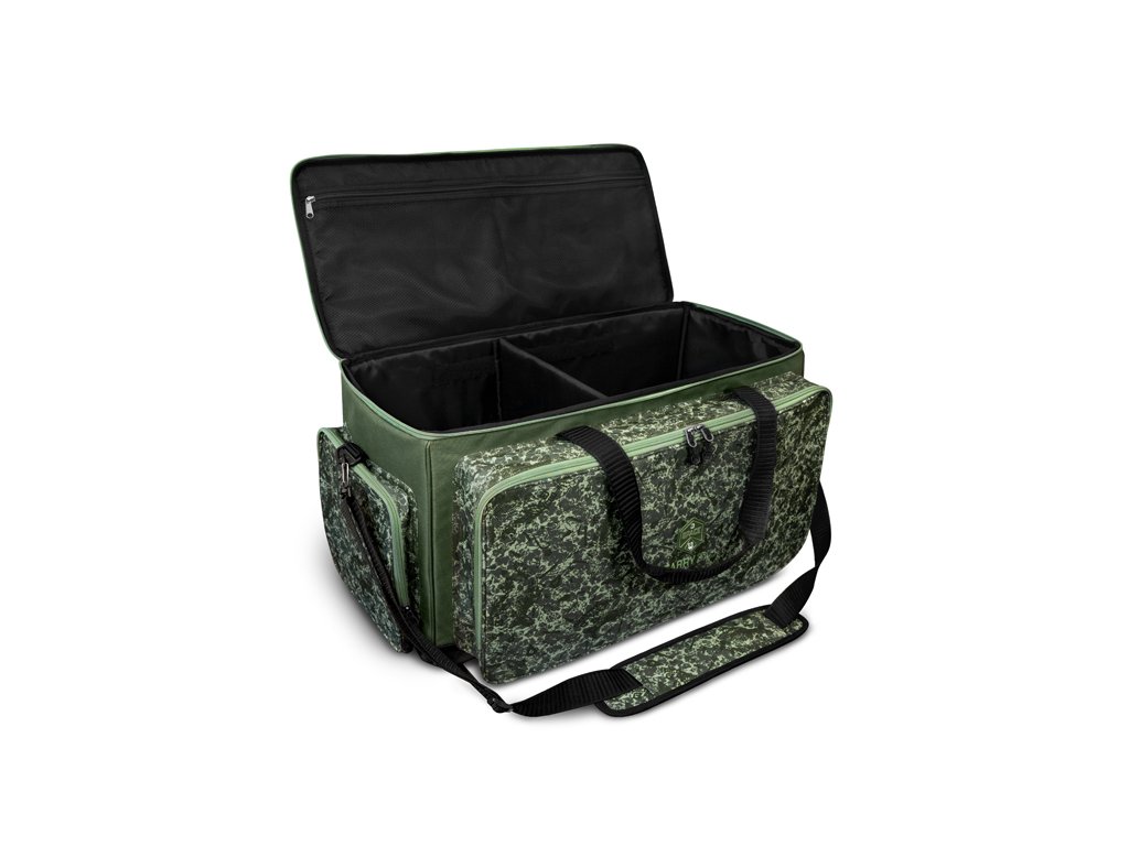 Delphin SPACE je označení pro exkluzivní sérii tašek z dílny značky Delphin. Vyznačuje se špičkovým zpracováním, kvalitními zipy, ale zejména výjimečným designem s použitím C2G kamufláže. Delphin CarryALL 3XL v provedení C2G je eXXXtra velká praktická taška pro uložení a transport rybářského příslušenství či oblečení. Navržena byla s důrazem na praktičnost, trvanlivost a odolnost vůči nepříznivým povětrnostním vlivům. Ze všech stran je důkladně polstrována 6mm silnou vrstvou, pro maximální ochranu výbavy uvnitř. Díky polstrování stěn je mimořádně stabilní i v případě, že je naprosto prázdná. Celá spodní část a boky do výšky až 5 cm jsou opatřeny kvalitním nepromokavým materiálem. Nehrozí tak znečištění a následně znehodnocení produktu při položení například na mokrou nebo špinavou zem. Taška navíc disponuje 3 vnějšími zipovatelnými kapsami pro uložení dalšího příslušenství. Uvnitř najdete ještě jednu velkou síťovou kapsu. Samotný vnitřek je navržen tak, abyste do něj s lehkostí ukládali další tašky série SPACE či AREA. K variabilitě přispívá také nastavitelná přepážka na suchý zip, umožňující přizpůsobit prostor tašky podle potřeby a oddělit tak například rybářské potřeby od oblečení či jídla. Maximální komfort dotváří mimořádně měkké polstrování popruhu pro zavěšení na rameno či praktické rukojeti pro nošení tašky v ruce. Technické parametry: Rozměr tašky: 80x40x35cm Čistý rozměr vnitřního prostoru: 70x31x34cm Rozměr přední kapsa: 65x25x5cm Rozměr boční kapsy: 35x25x5cm Vnitřní síťovaná kapsa: 70x29cm Objem: 90l Stylová patentovaná kamufláž z dílny značky Delphin pod označením C2G má mnoho podob a úhlů pohledu. Přesně tak i její název, který můžeme volně přeložit jako Carpath 2. generace, což přímo odkazuje na jejího předchůdce, ale můžeme ho číst i jako Carpath to Green, tedy přechod myšlenky Carpathu do zelené barvy. Její jedinečnost a nezaměnitelnost spočívá v prvcích, ze kterých je vytvořena. Na první dojem jde o kamufláž tvořenou třemi různými odstíny zelené. Všechno se však změní při detailnějším pohledu, kdy si všimnete siluety kaprů, komponent kaprařské montáže a log značky Delphin spolu s označením C2G. Díky tomuto neopakovatelnému provedení se vaše rybářská výbava okamžitě stane jedinečnou a maximálně originální.Doplňkové parametry