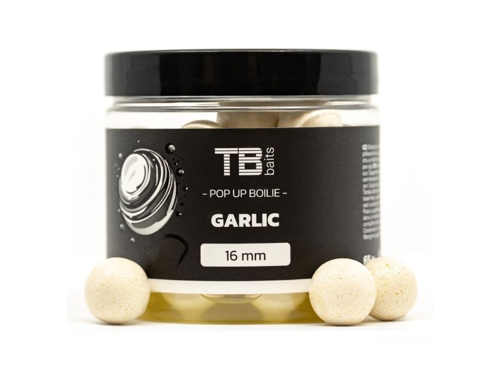 Plovoucí boilies TB BAITS Boilie Pop-Up White Garlic + NHDC 65g