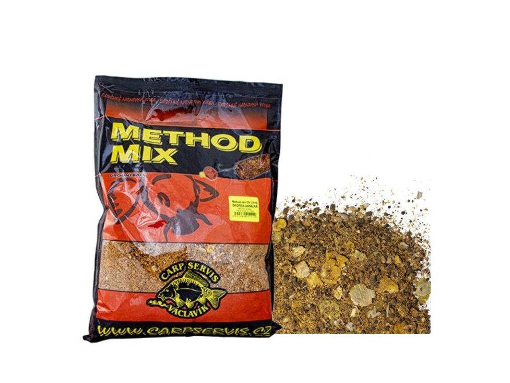 CSV Method mix CS 1,5kg je jemně až středně frakční krmná směs pro method feeder a rychlé feederové chytání, postavená na kombinaci tepelně upravených surovin, halibut peletek a lisovaných semen ve formě vloček. Vločky ze semen fungují jako výrazná přirozená potravní složka, kterou ryby ochotně sbírají přímo z krmítka i v jeho okolí, a halibut peletky doplňují směs o živočišně laděnou stopu a vyšší výživnost. Díky tepelně upraveným komponentům mix dobře pracuje, váže tekutiny a po dopadu na dno postupně uvolňuje drobné částice, takže vytváří aktivní krmný bod bez zbytečného přesycení. Směs je vhodné míchat s vodou nebo tekutými atraktory (např. CSL, Melamix) s předstihem alespoň hodinu, protože absorbuje velké množství tekutin; těsně před lovem je potřeba ji znovu dovlhčit a doladit konzistenci tak, aby se dobře plnila do method krmítek a držela při náhozu, ale na dně se spolehlivě rozpadala.